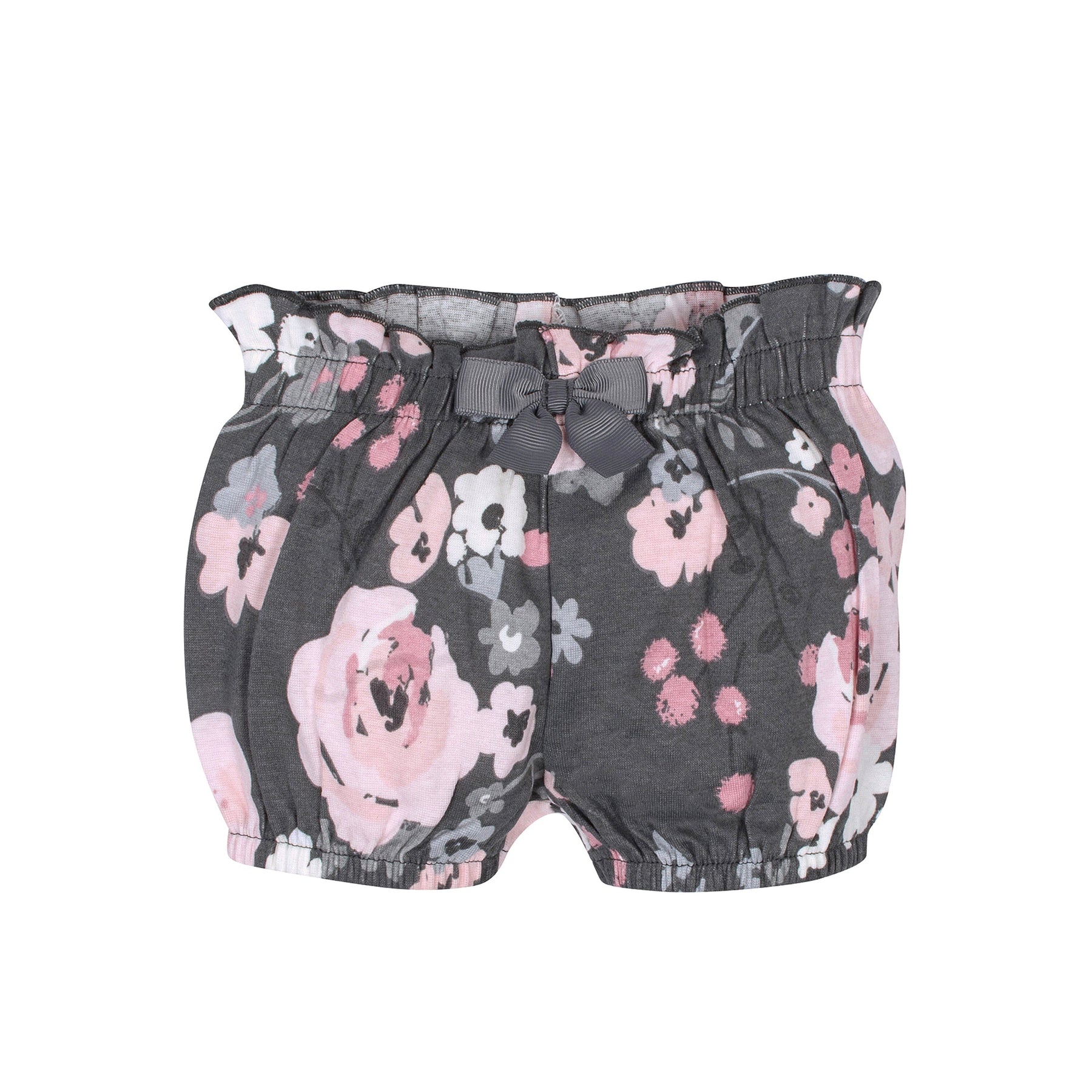 4-Pack Baby Girls Gray Floral Bubble Shorts