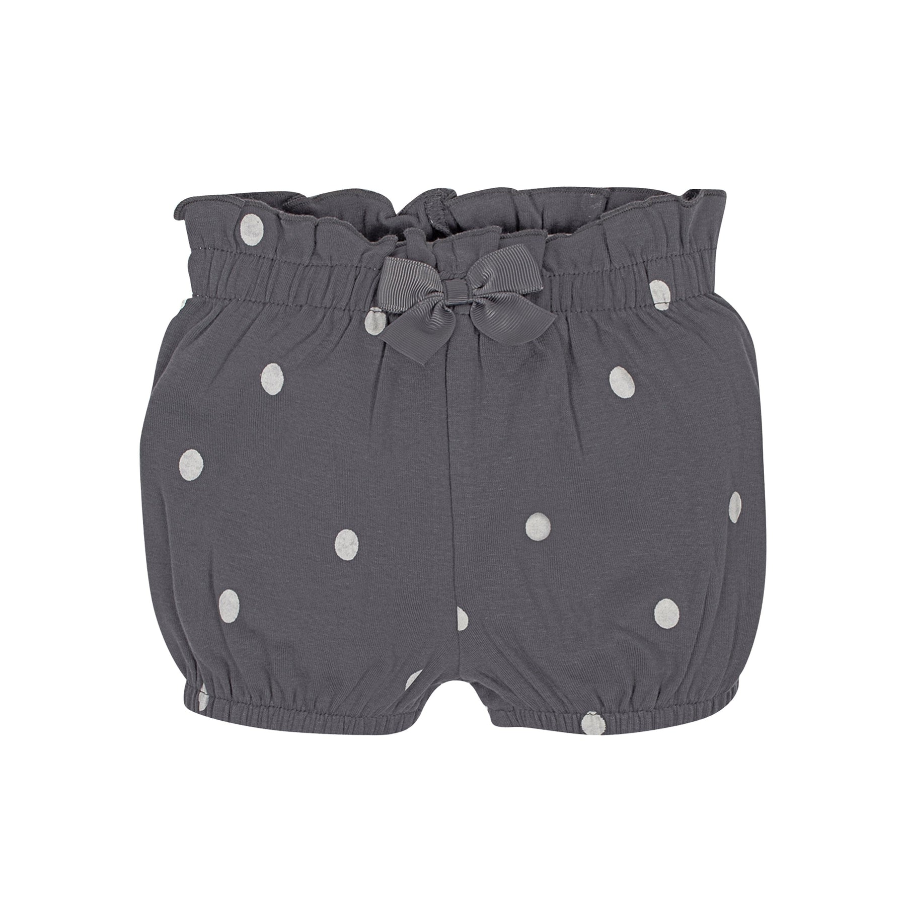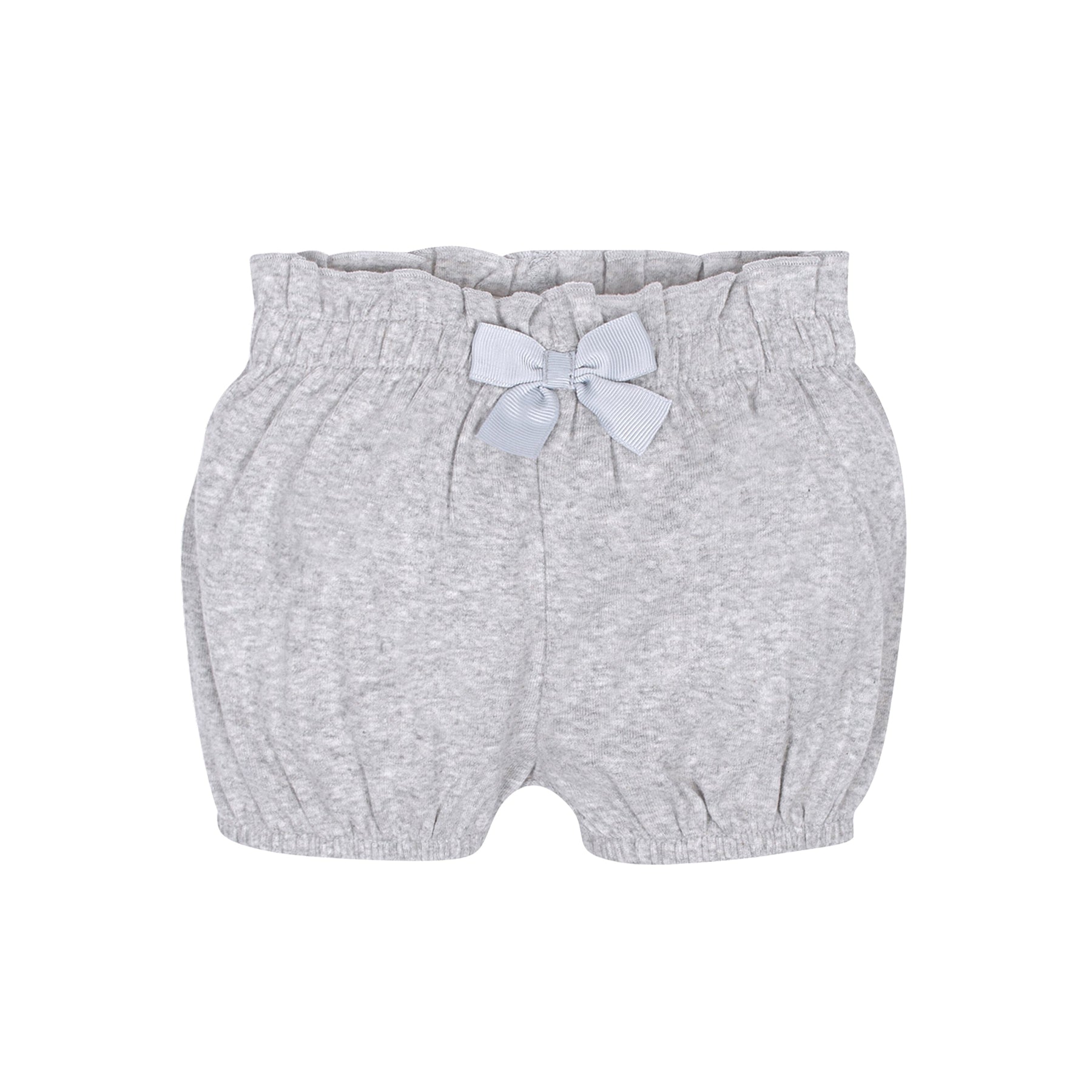 Our baby shorts are perfect to mix and match with their favorite tees, Onesies® bodysuits and accessories. Each pair is made with super soft cotton fabric blended with a touch of spandex. The shorts feature gentle elastic waistbands for quick and easy changes. Our essentials have been independently certified with STANDARD 100 by OEKO-TEX® so that you don’t have to worry about harmful substances in your baby’s wardrobe. This pack includes four pairs of gray baby girl shorts in solid, striped, polka dot, and floral prints.