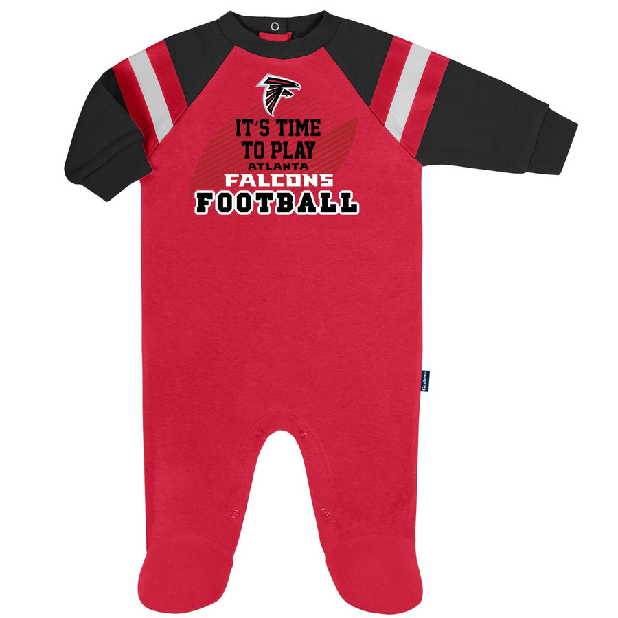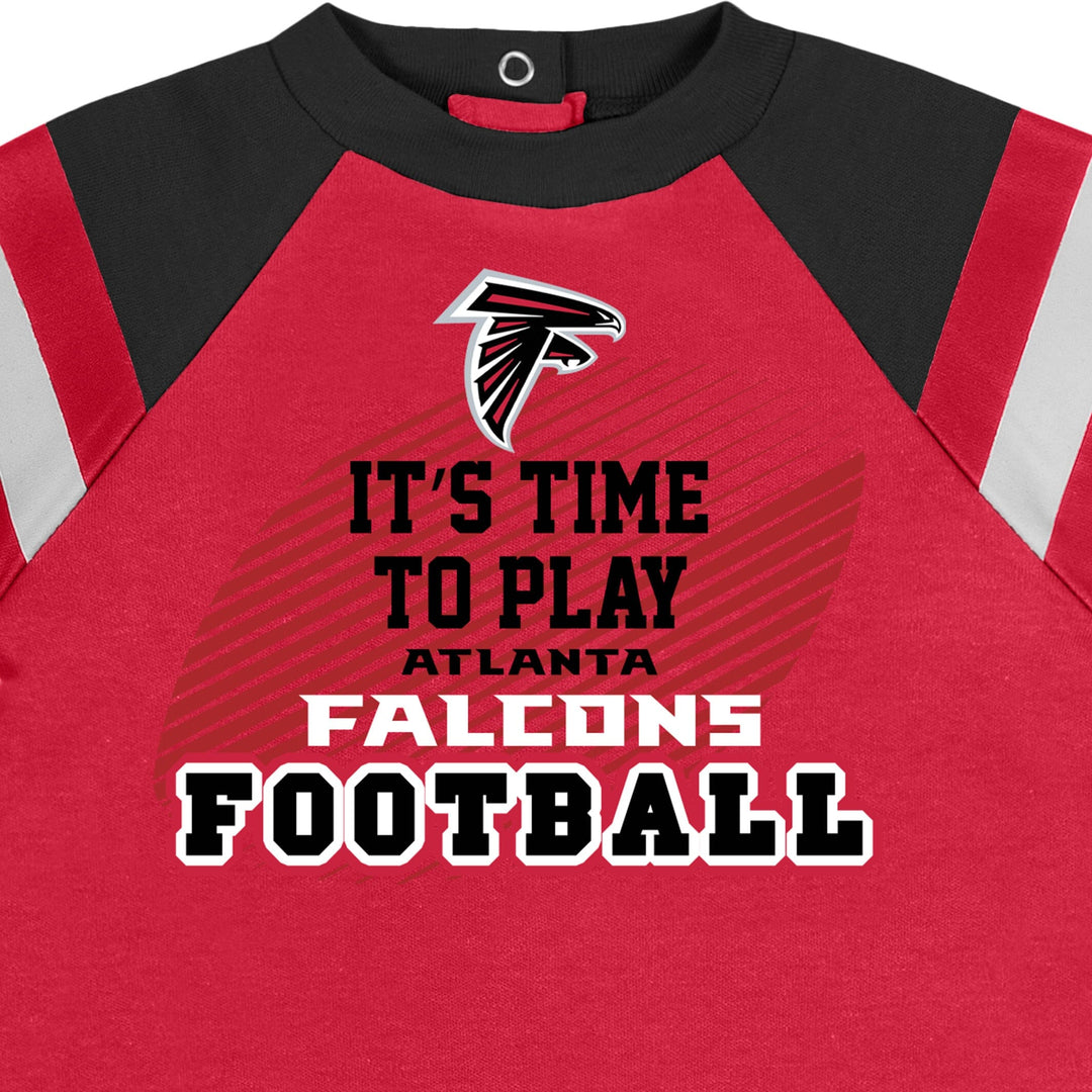 From the kickoff to the final seconds spent running down the clock, this officially licensed Atlanta Falcons coverall provides the perfect outfit for enjoying all of the game day fun! The Falcons logo stays in the forefront via the screenprint with puff details. The coverall features inner thigh snaps and a back placket for ease and comfort. The cozy cotton blend interlock provides a warm, cozy feel for cheering on a touchdown pass or romping around during commercial breaks. When it's time to hit the lockers, the machine wash and dry fabric keeps clean up simple.