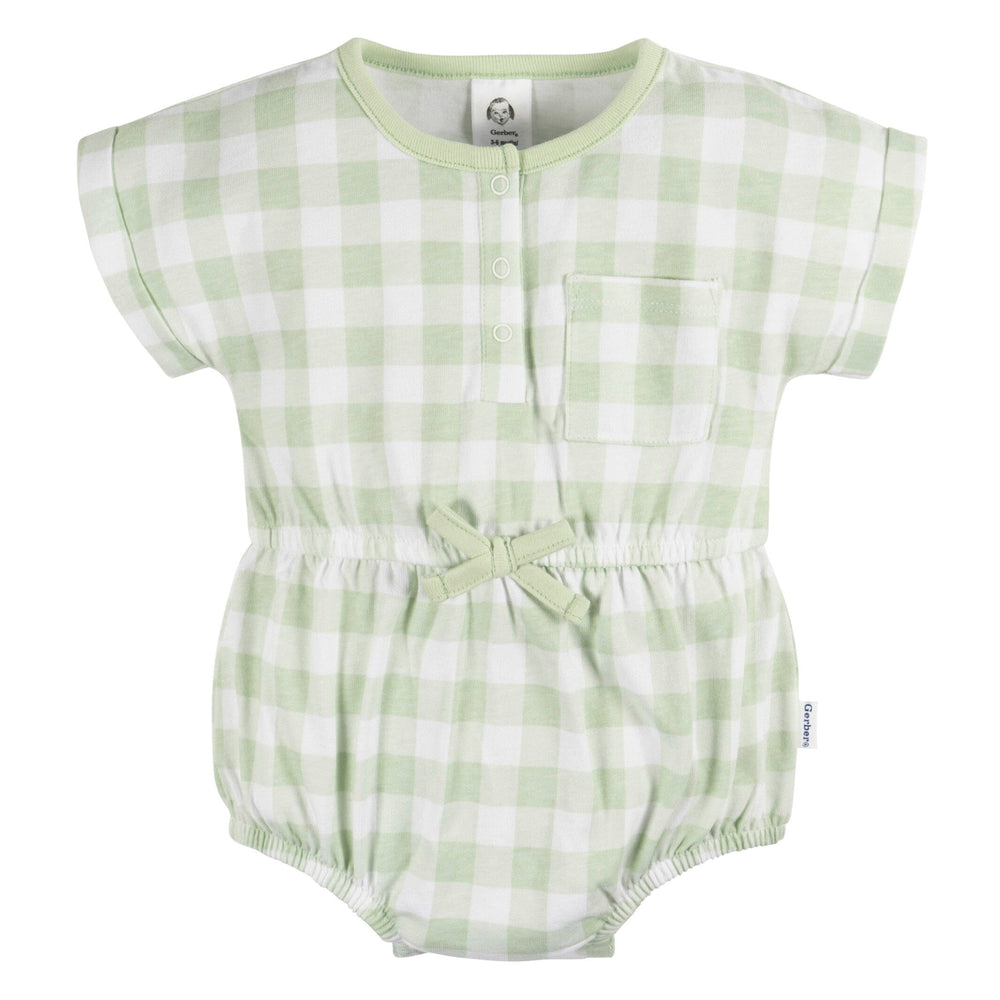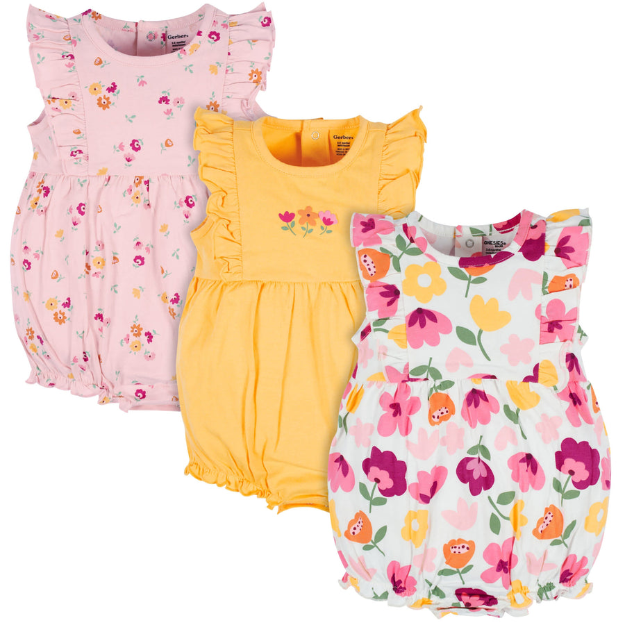 Rompers are the perfect new addition to your baby girl’s closet!  Include them in her rotation of bodysuits and dresses for plenty of stylish selections. Baby girl rompers from Gerber Childrenswear are soft and stretchy, featuring breathable material and convenient leg snaps perfect for her next adventure. With so many styles, you’ll always have a foundation for an adorable outfit. Choose from the cutest colors and prints, then accessorize with sweet baby girl accessories like hair bows or fun sunglasses!