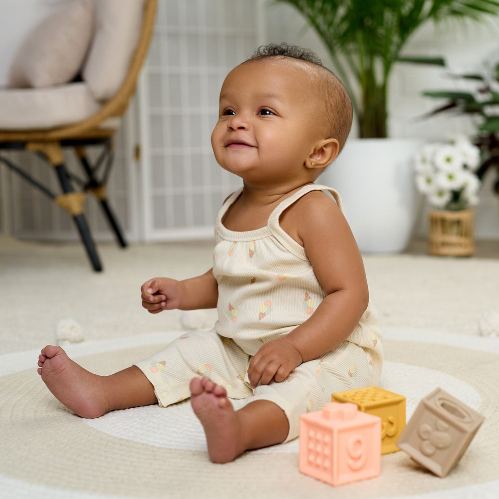 Babies can wear trendy outfits, too! Shop the latest romper looks, including the baby girl romper dress and best-selling pink newborn romper. Complete your little girl’s look with a soft cotton top, like a peached jersey double ruffle top or a premium short-sleeved tee. Gerber Childrenswear’s softest edit features adorable rompers made primarily from eucalyptus viscose blended with spandex. These snug-fit rompers feel buttery soft on your baby’s skin, with on-trend colors and prints for every season. Find your favorite look for the next playground visit or playdate! Discover a range of infant sizes and toddler girl outfit sets that grow with your baby.