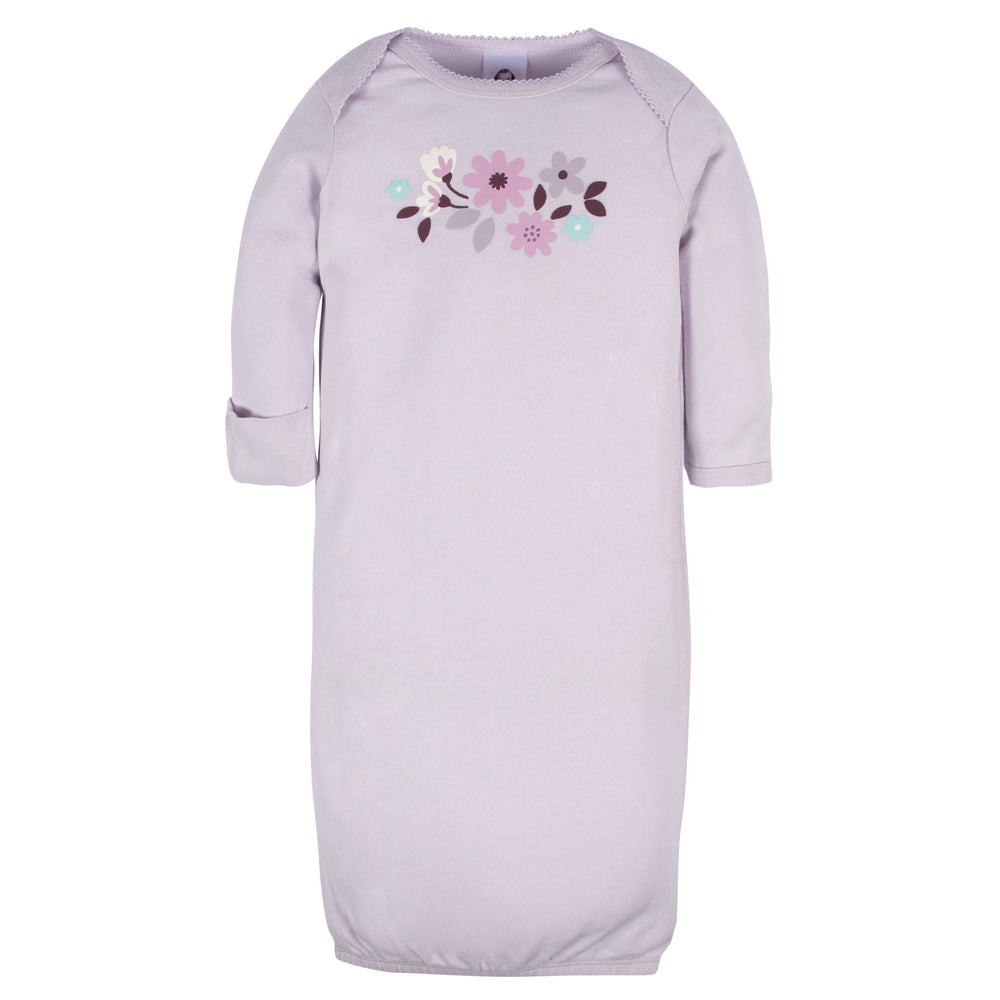 Our charming baby gowns for infant girls add instant comfort and personality. Their open-bottom design is also sure to help with overnight diaper changes. While you have easy access to our unisex cloth diapers, you and your baby will benefit from an expandable lap shoulder neckline. Purchase an organic gown and cap set for the baby's ride home from the hospital or add multipacks of our adorable gowns to your baby registry.
