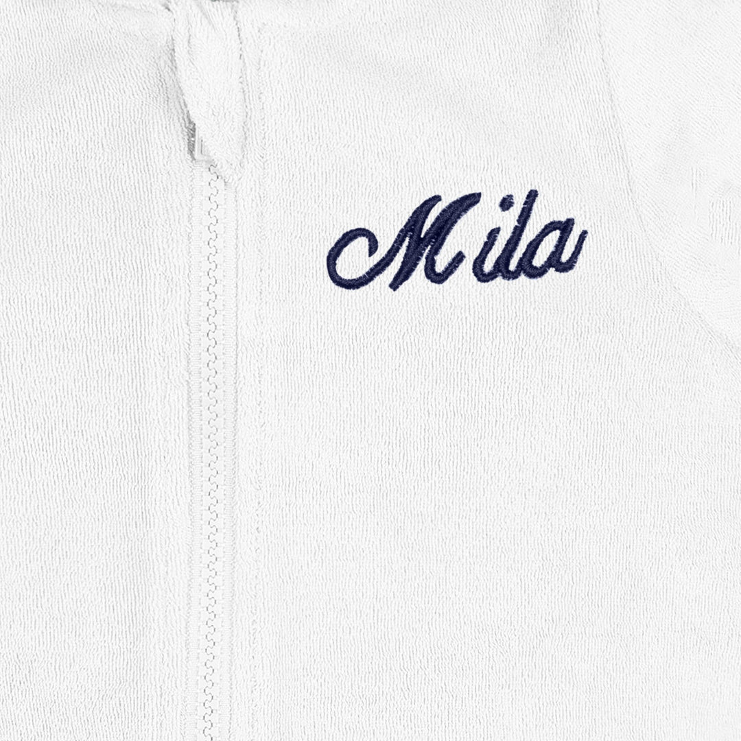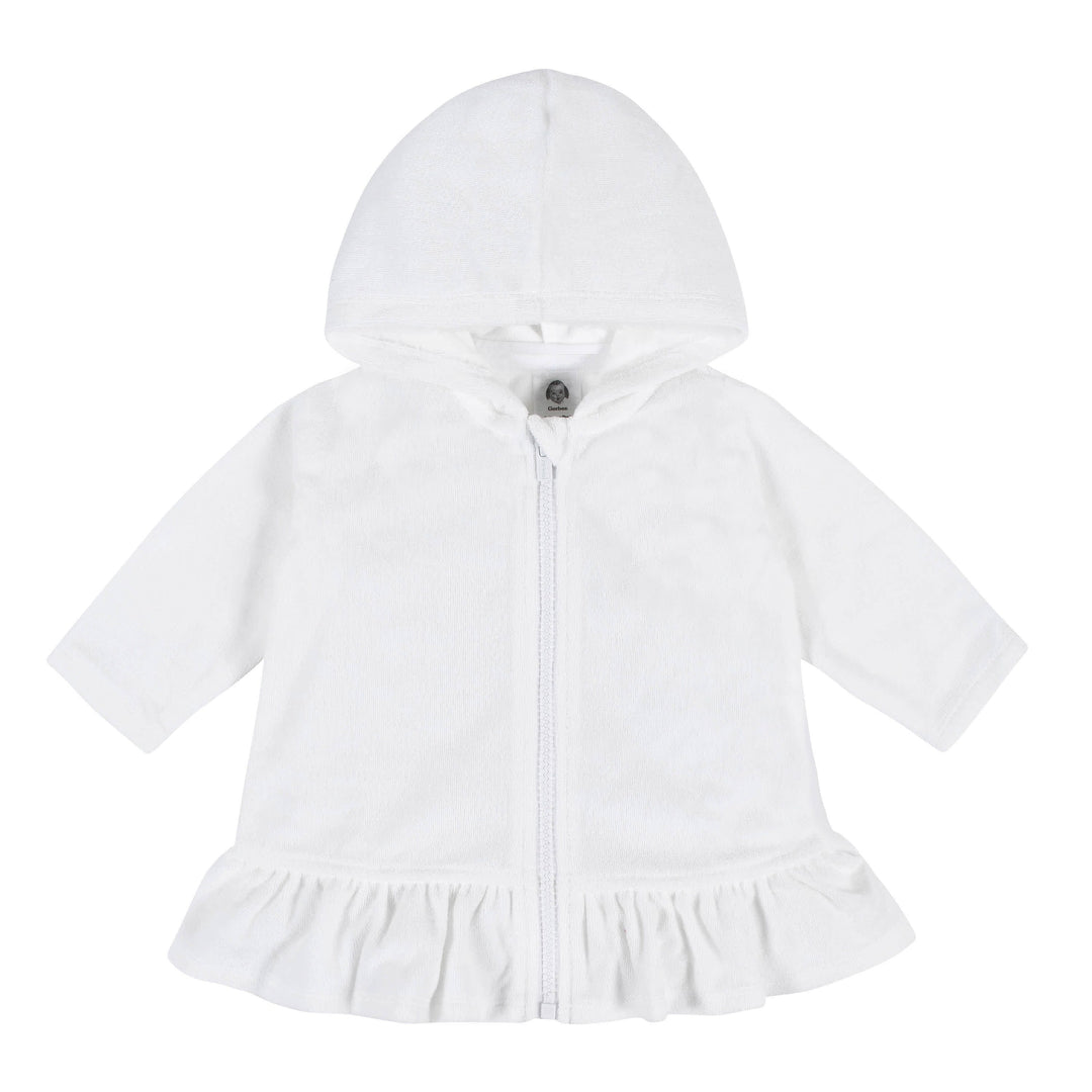 Embroidered Baby & Toddler Girls White Hooded Zip Front Terry Swim Coverup