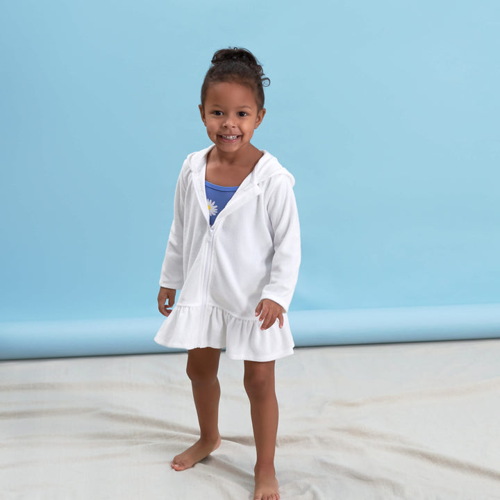 Our white baby and toddler swimsuit coverups are made with soft terry fabric that your little one will adore. They’re cute, comfy, easy-care, and perfect for any swimming adventure!