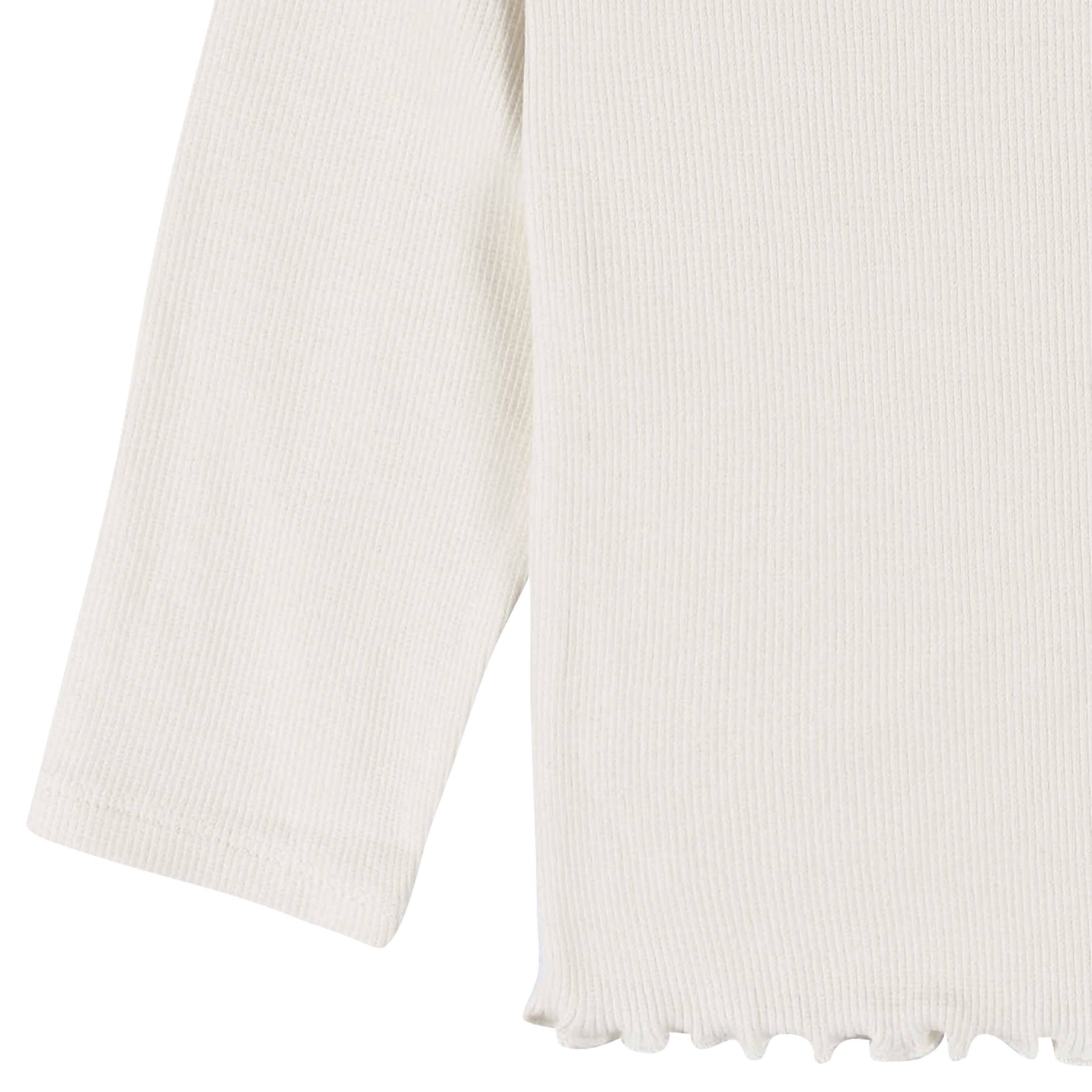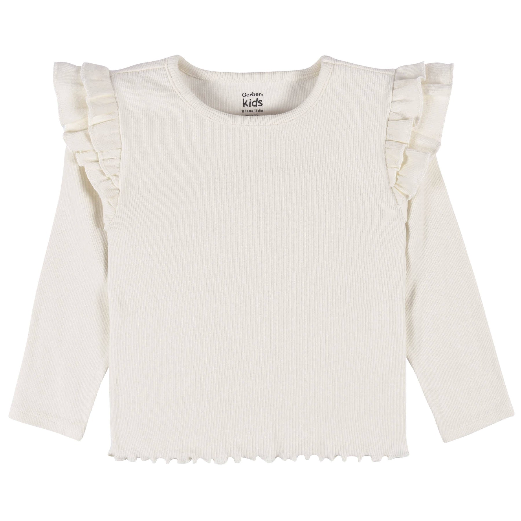 • Made with soft, breathable cotton rib fabric to keep your child comfortable all day long. Long sleeve sleeve shirt features a double ruffle sleeve and scalloped edge on the waist. Mix and match with our solid or matching leggings for that complete look. Layer overtop with our jackets or sweaters for extra warmth! Perfect for those picture perfect moments or play dates.