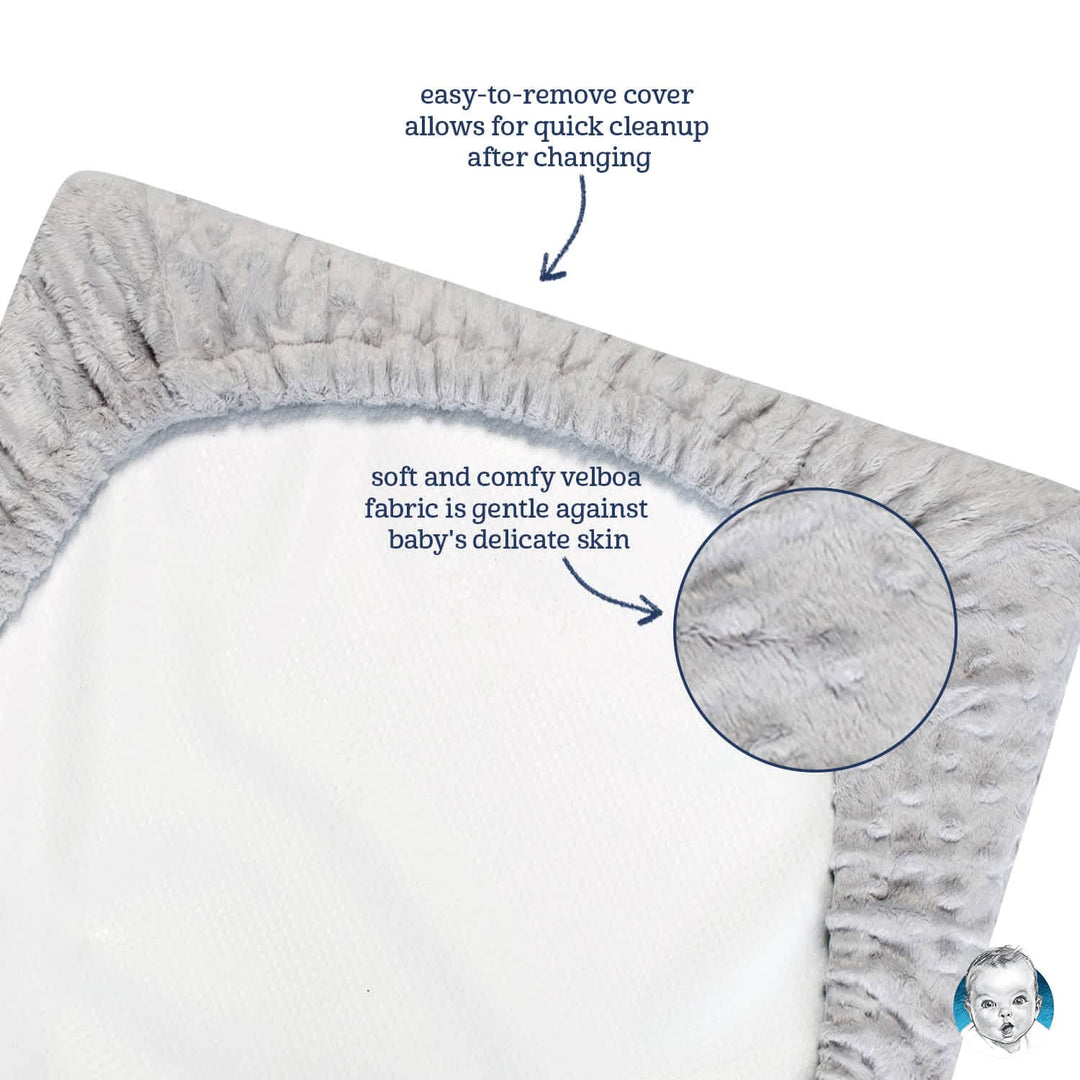 - Sized 16" x 32" to fit standard size changing pads, perfect to accent any baby nursery. Features elastic edges for a snug, safe fit on your little one's changing pad. Easy-to-change. Pair with our coordinating fitted crib sheets, milestone blankets, & flannel receiving blankets for even more cuteness.
