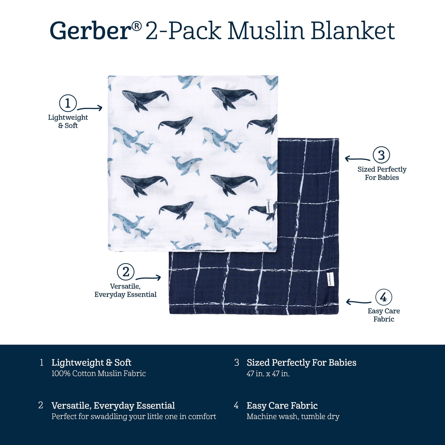 2-Pack Baby Boys Coastal Calm Muslin Blankets
