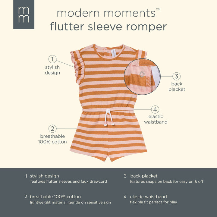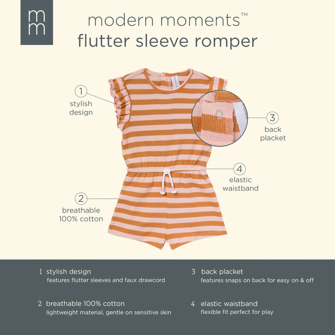 • Rose romper with stripes, flutter sleeves