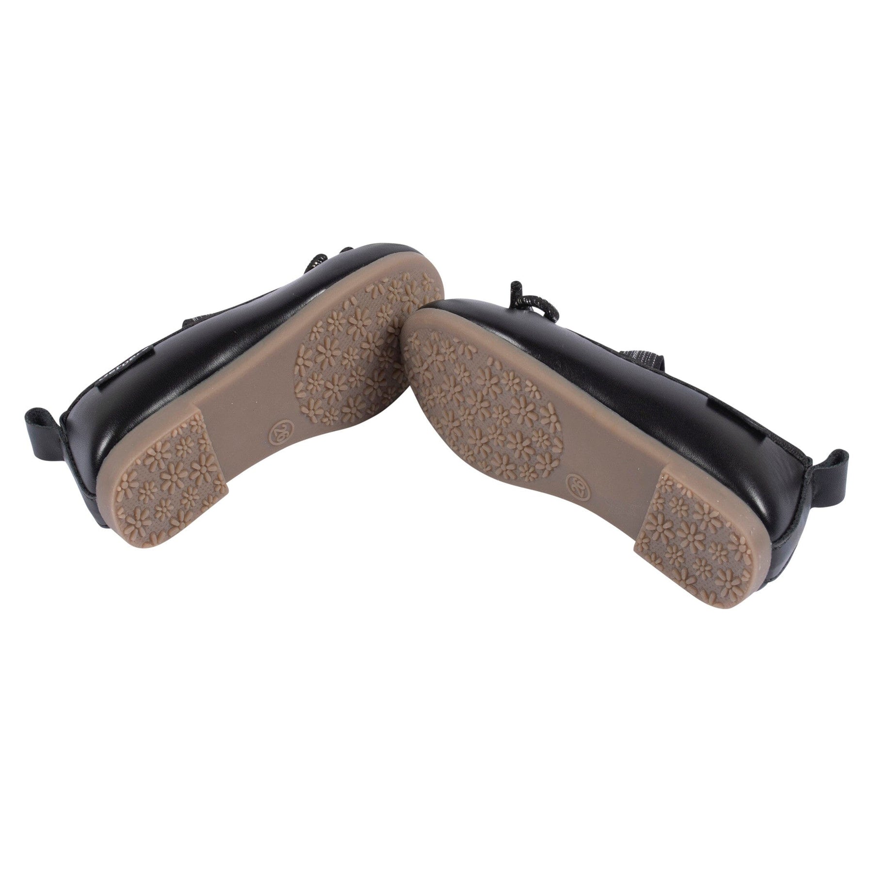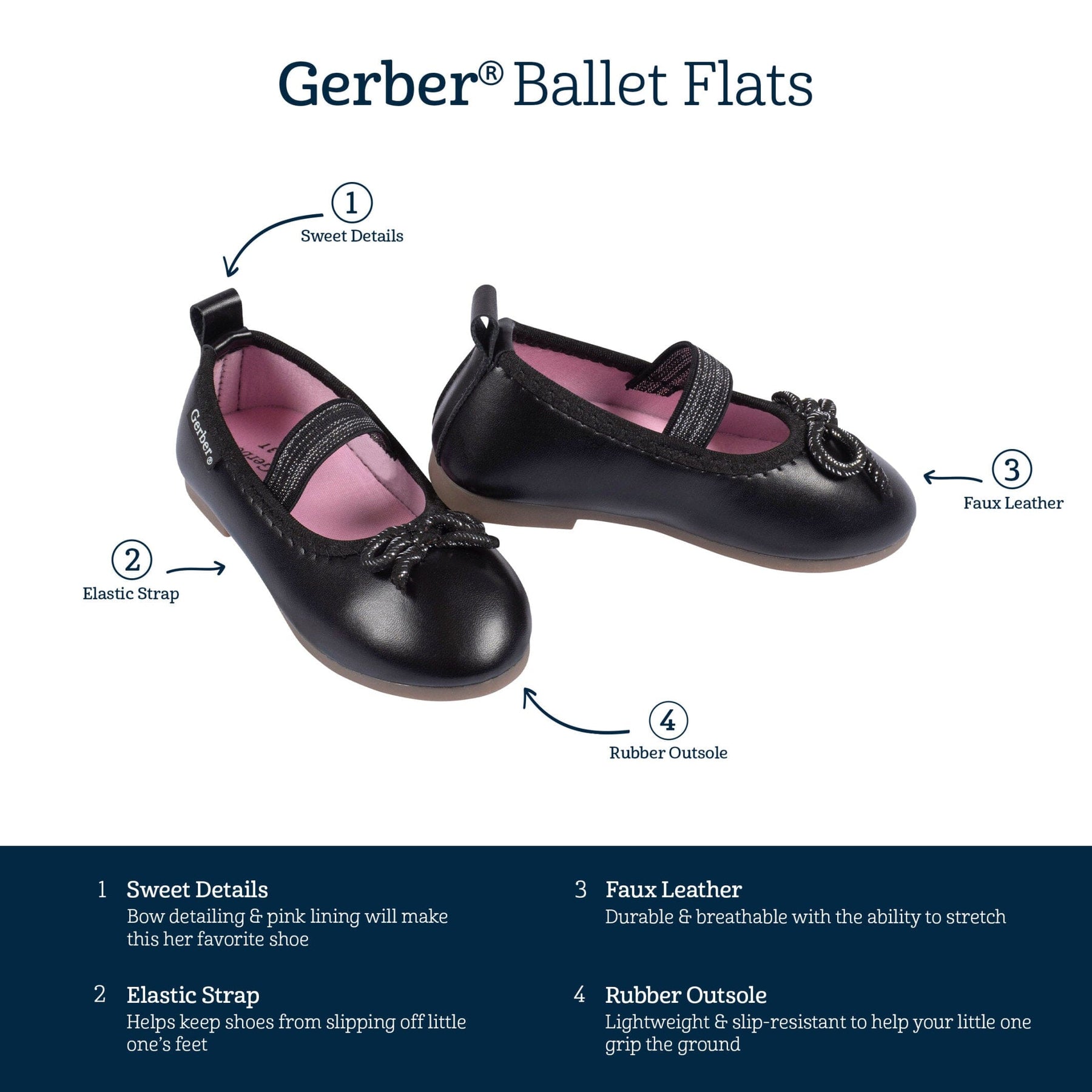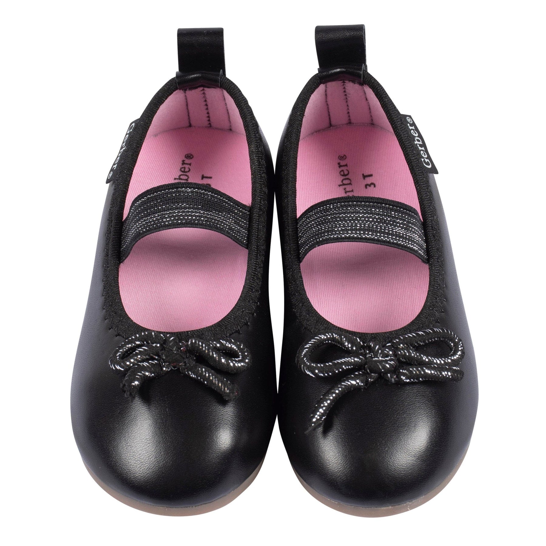 Learning to walk is a great big adventure! The right shoes help your little one master this new skill while protecting little feet. Made from polyester and cotton for a comfortable fit with a cotton canvas bottom for strong support and topped by an adorable bow, your little girl will be on the move with confidence. Pack includes one pair of black ballet slipper style shoes.