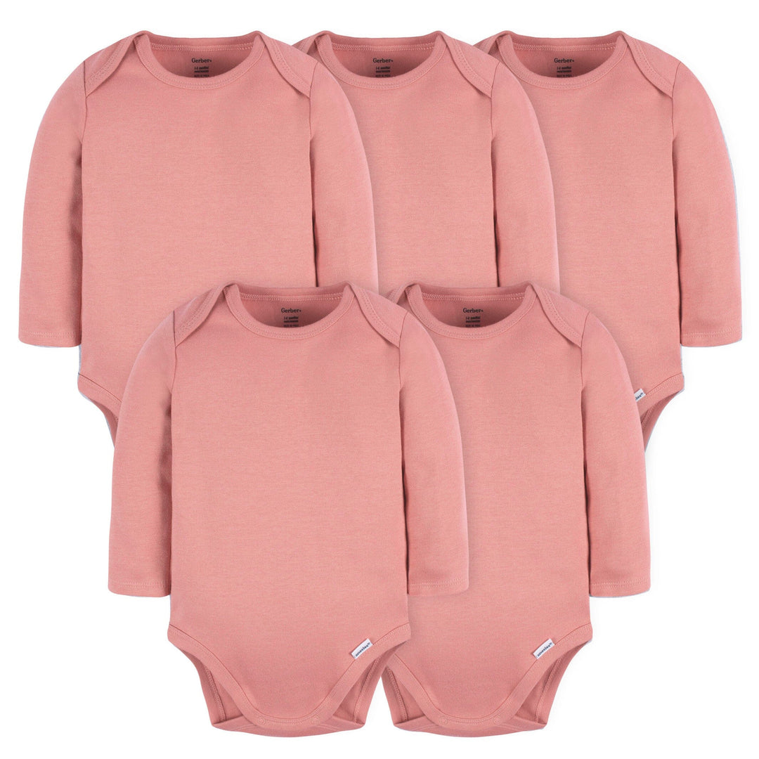 5-Pack Baby Mauve Pink Premium Long Sleeve Onesies® Bodysuits