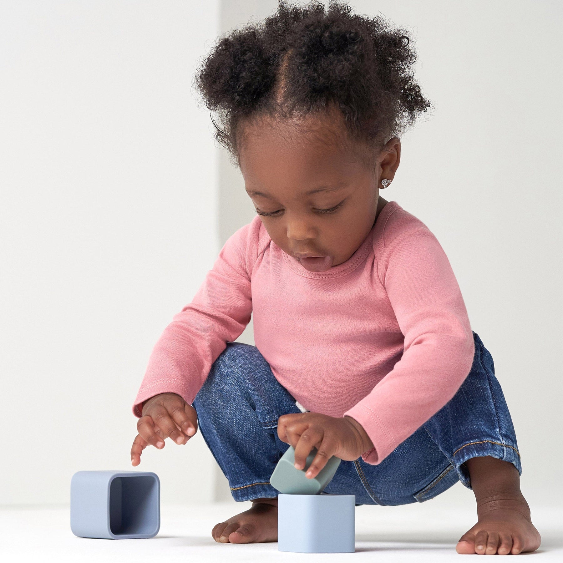 Keep your little girl cozy and cute in our pink long sleeve Onesies® brand bodysuit. Long sleeves are ideal for protection from sun and wind, and it's easy to add extra layers when needed. With a simple snap closure and convenient lap shoulder neckline, dressing and undressing is fast and simple. Made from 100% cotton interlock to be gentle on sensitive skin with a warmer feel than cotton rib and the perfect amount of stretch, your baby girl will be comfy all day long. Clean as needed with convenient machine washing and drying. Our essentials have been independently certified with STANDARD 100 by OEKO-TEX® so that you don’t have to worry about harmful substances in your baby’s wardrobe. This pack includes five bodysuits.