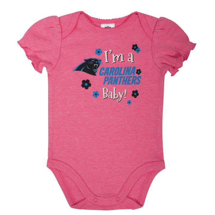 3-Pack Baby Girls Carolina Panthers Short Sleeve Bodysuits