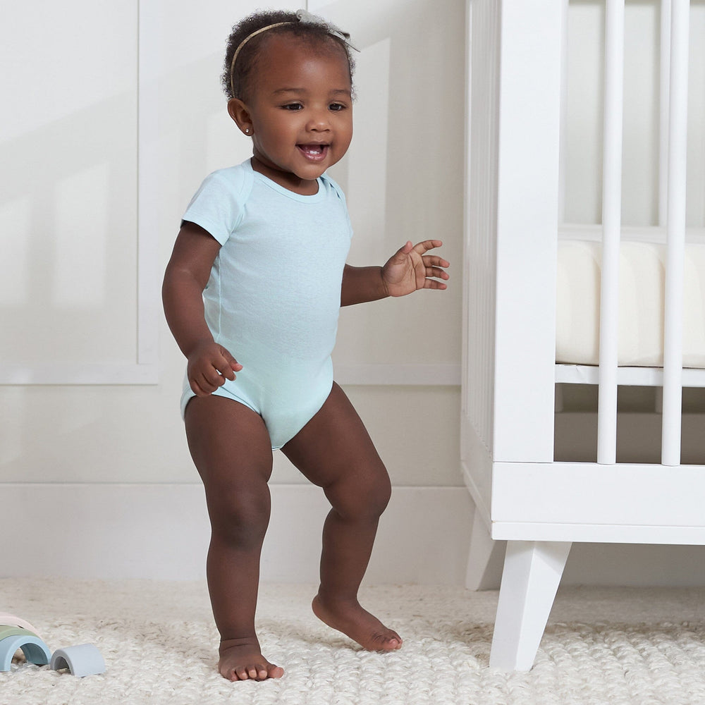 These Onesies® bodysuits are your essential baby everyday outfit. Easy to wear as a one-piece outfit in warmer months and simple to layer on cooler days. Crafted from 100% cotton to be gentle on sensitive skin, these outfits are easy to slip on either as a pullup or pullover. High-positioned snaps make it easy to change a diaper without removing the entire outfit. If an outfit change is needed, the expandable lap shoulder neckline makes it easy to pull the dirty outfit down over the legs. We use STANDARD 100 by OEKO-TEX® certification on products tested in an independent laboratory against a list of more than 400 harmful substances, including PFAS. This pack includes five Onesies® bodysuits.