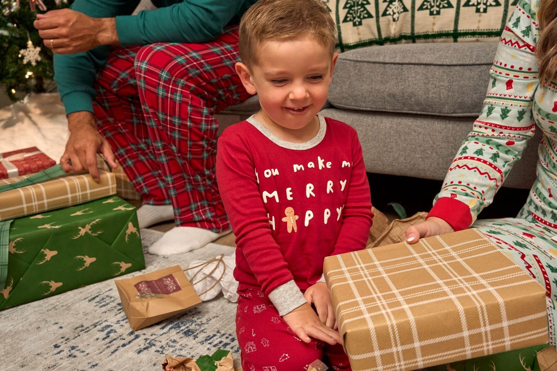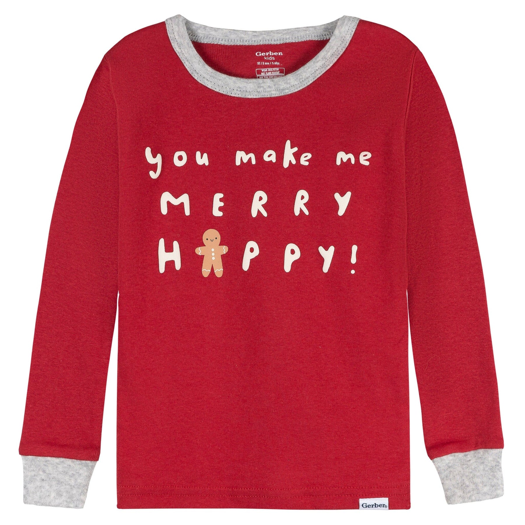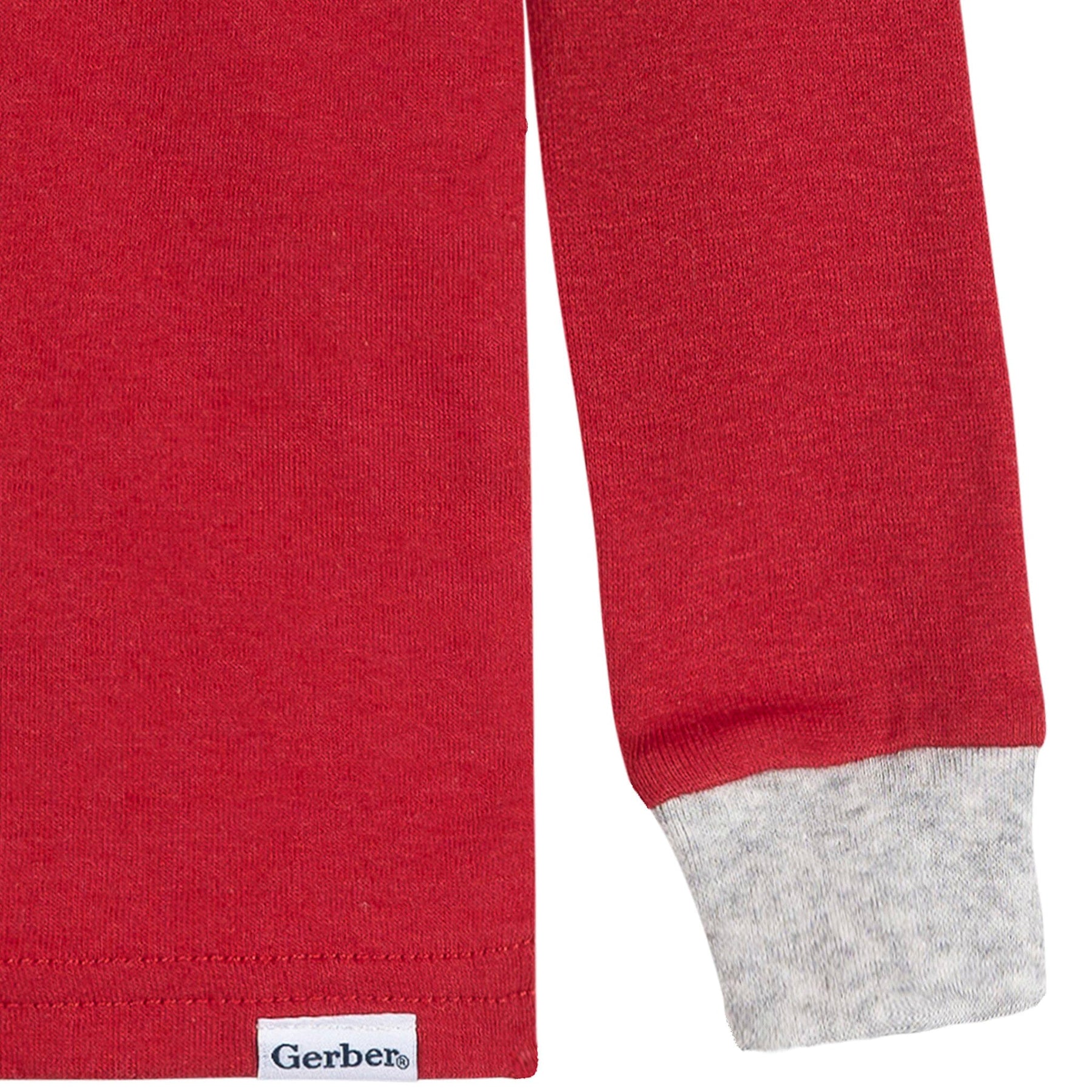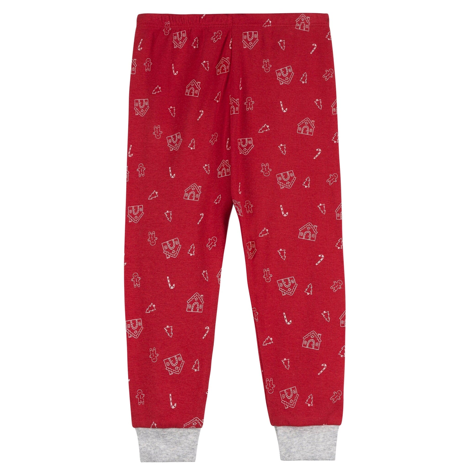 Make bedtime extra merry with this festive 2-piece pajama set! Crafted from soft, durable cotton, it’s gentle on delicate skin and perfect for cozy nights. The comfort-stretch waistband ensures a comfy fit, while cinched wrists and ankles keep everything snug and secure. Designed in a rich dark red with a charming white holiday-themed stencil print, this set brings the magic of the season to every snuggle and bedtime story! Our essentials have been independently certified with STANDARD 100 by OEKO-TEX® so that you don’t have to worry about harmful substances in your little one's wardrobe. Pack includes pajama top and bottom.