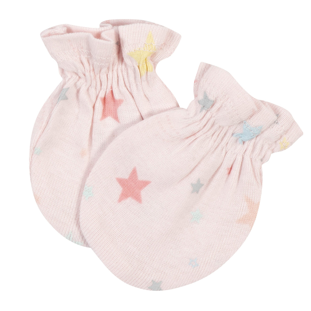 Protect your little one’s sweet face from scratches without sacrificing style. We had our essentials independently certified with STANDARD 100 by OEKO-TEX® so that you don’t have to worry about harmful substances in your baby’s clothing. This pack includes three pairs of rainbow themed no scratch mittens.