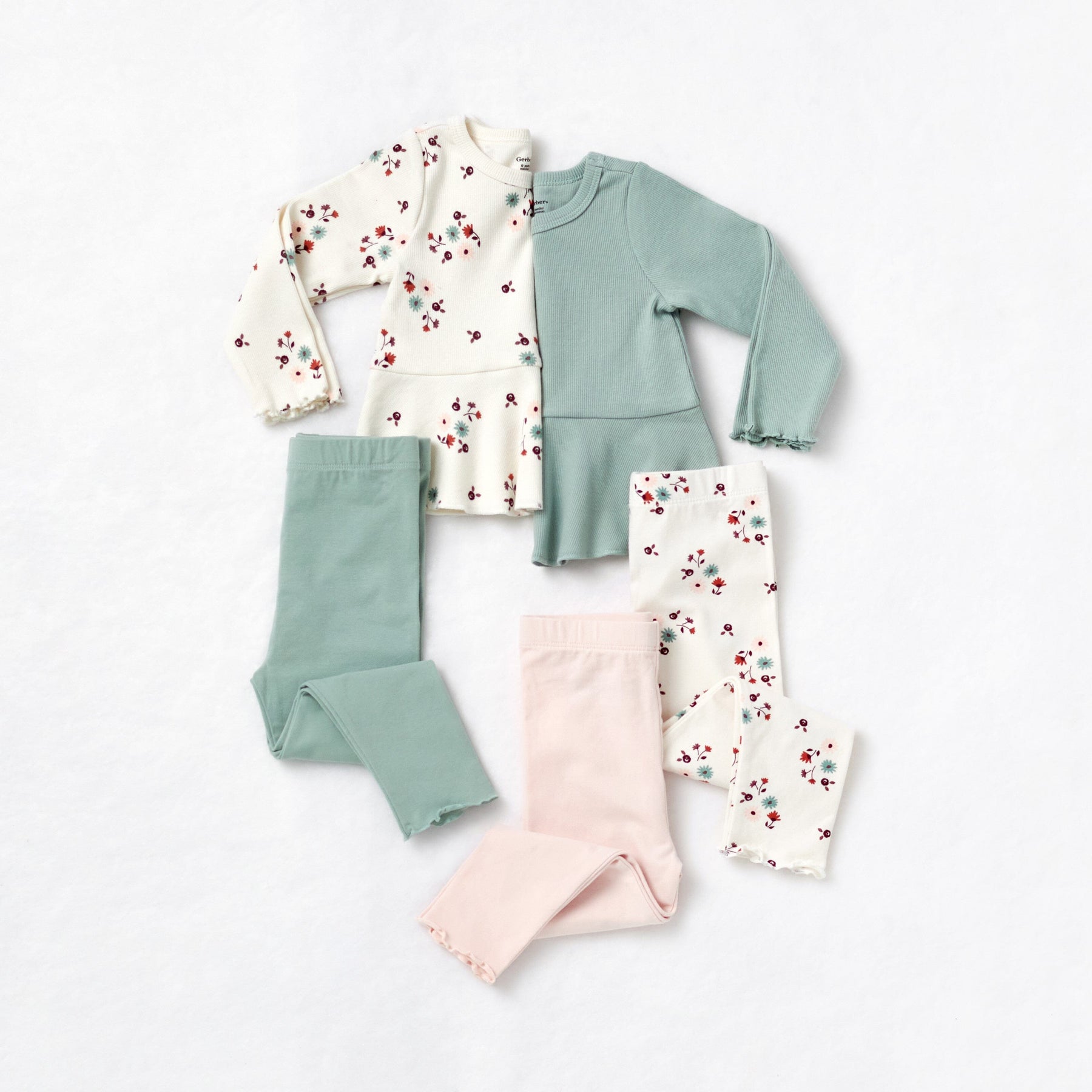 Our long sleeve peplum waist tops are the basic shirt every wardrobe needs! Each top is designed for easy dressing and all-day comfort, perfect for infants and toddlers. We use STANDARD 100 by OEKO-TEX® certification on products tested in an independent laboratory against a list of more than 400 harmful substances, including PFAS. Pair these mint floral themed peplum tops with our coordinating printed or solid leggings for all day play!
