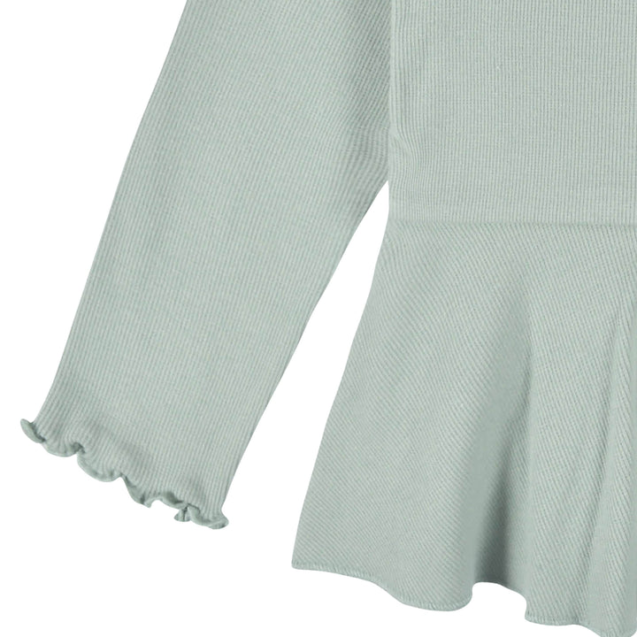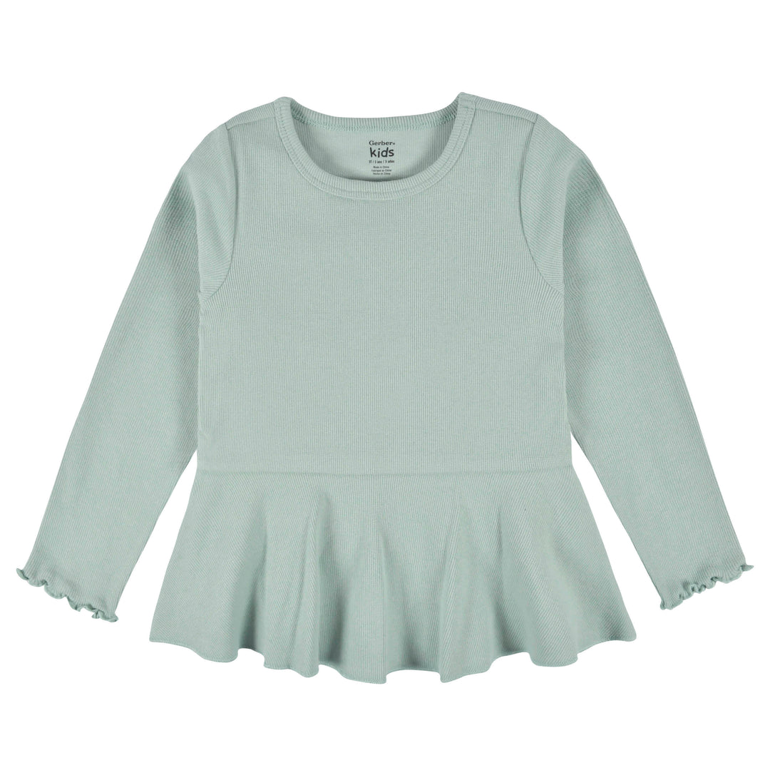 • Made with soft, breathable cotton rib fabric to keep your child comfortable all day long. Long sleeve peplum waist top features a drop waist and scoop neckline. Sleeves feature a lettuce edge around the wrist. Mix and match with our solid or matching leggings for that complete look. Layer overtop with our jackets or sweaters for extra warmth! Perfect for those picture perfect moments or play dates.