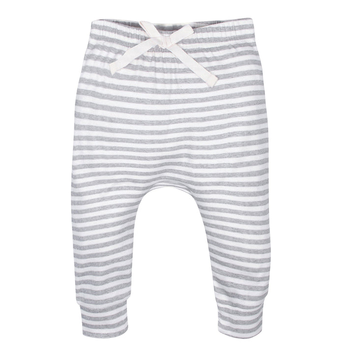 Our jogger pants are perfect to mix and match with their favorite bodysuits, tees, and tops. Each pair of baby boy pants is made with super soft cotton fabric blended with a touch of spandex. Our essentials have been independently certified with STANDARD 100 by OEKO-TEX® so that you don’t have to worry about harmful substances in your baby’s wardrobe. This set includes 4 baby girl joggers in solid gray, stripe, floral, and polka dot patterns.