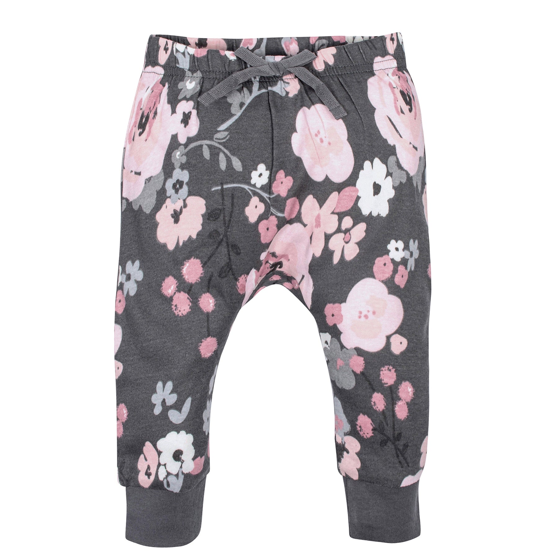 4-Pack Baby Girls Gray Floral Jogger Pants