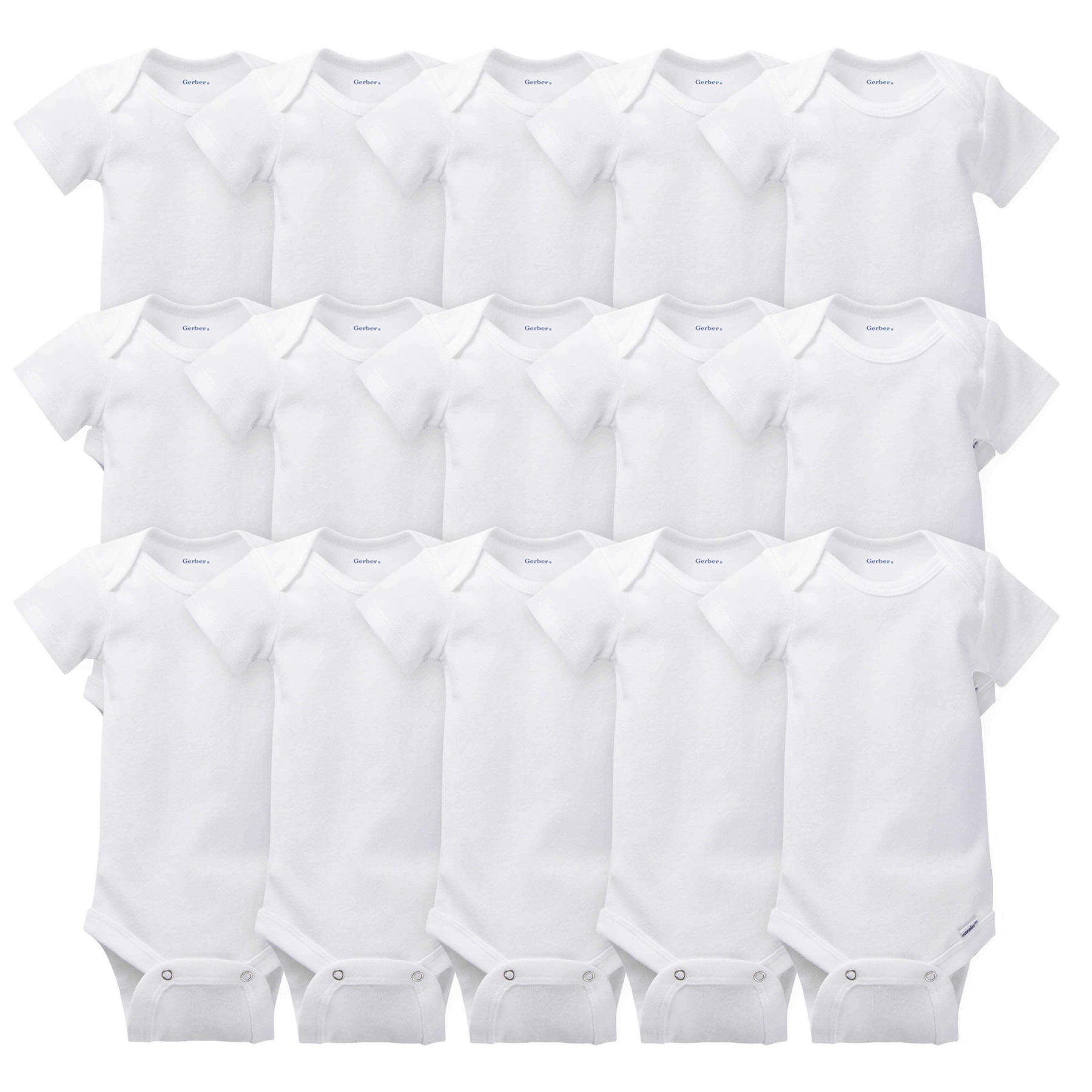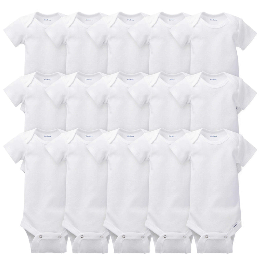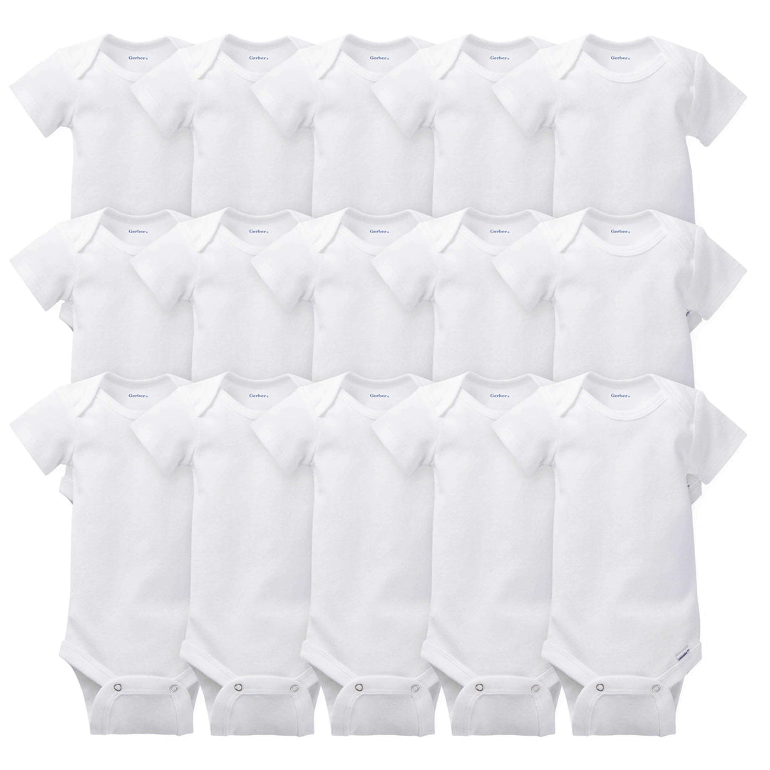 • includes 15 white short-sleeve Onesies