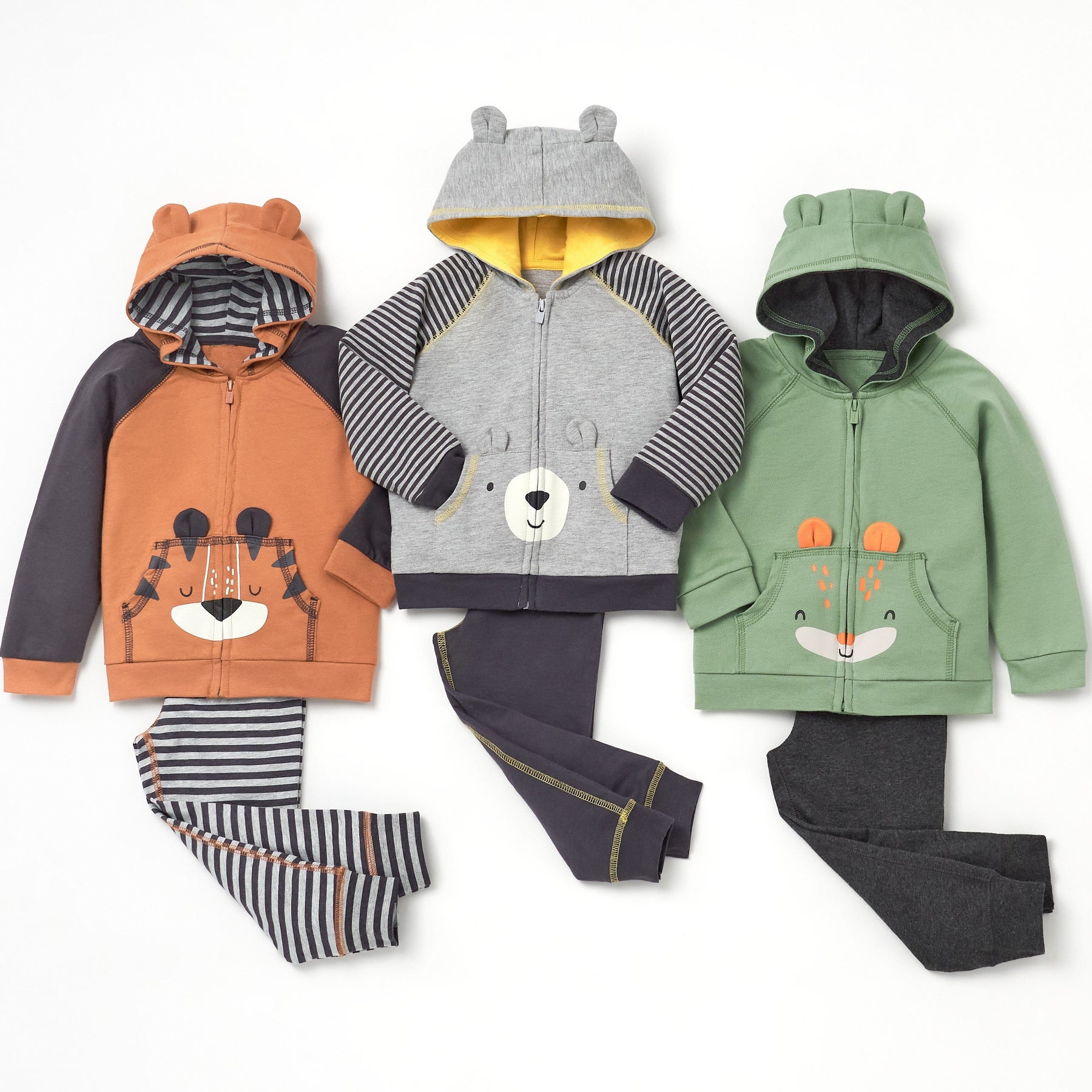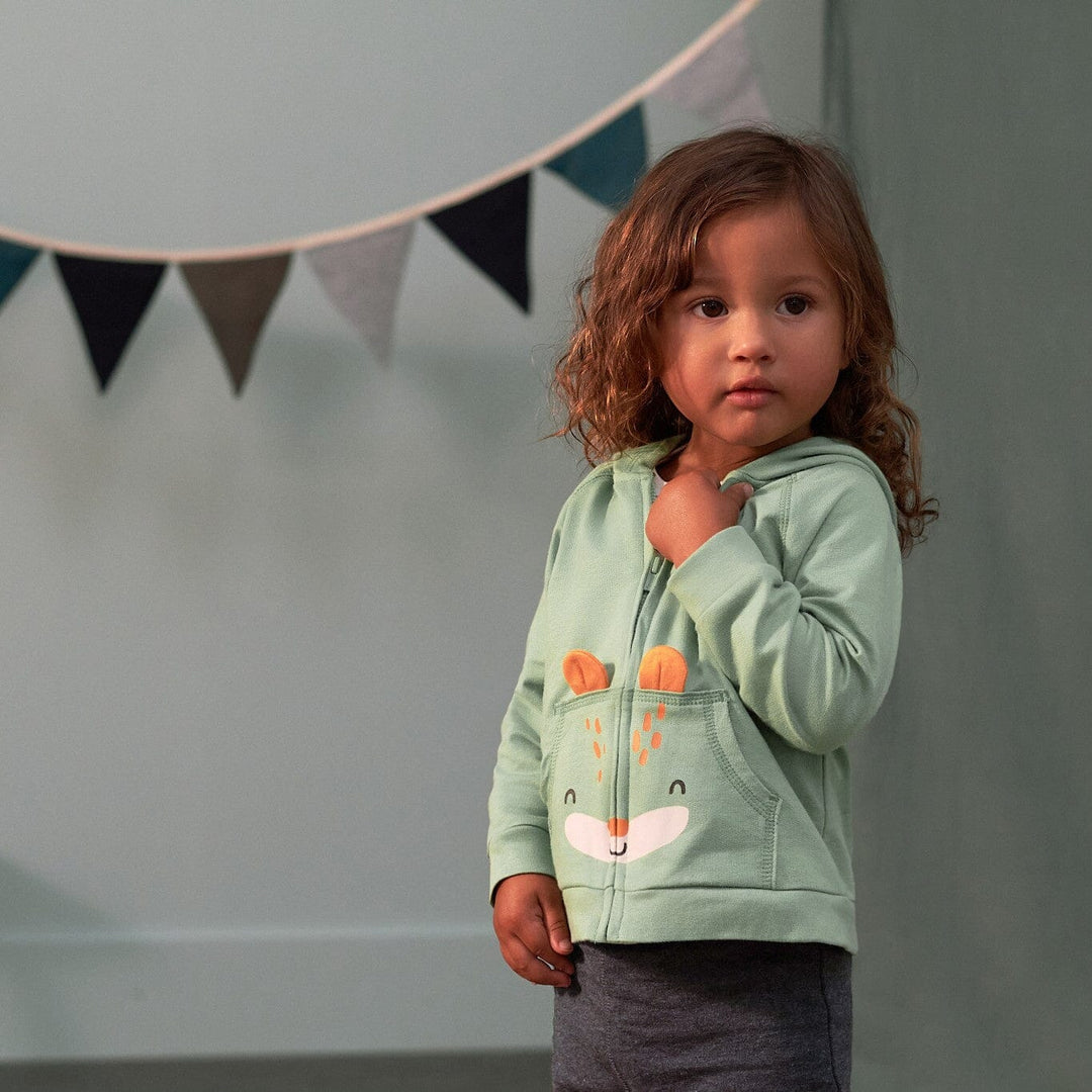 • Hoodie features front zip for easy on & off, long sleeves, kangaroo pocket & comfy hood with 3D applique ears. Joggers feature gentle elastic waistband for all-day comfort. Perfect for easy changes or potty-training toddlers. Layer underneath with Onesies® bodysuits, short sleeve tees, or long sleeve tees.