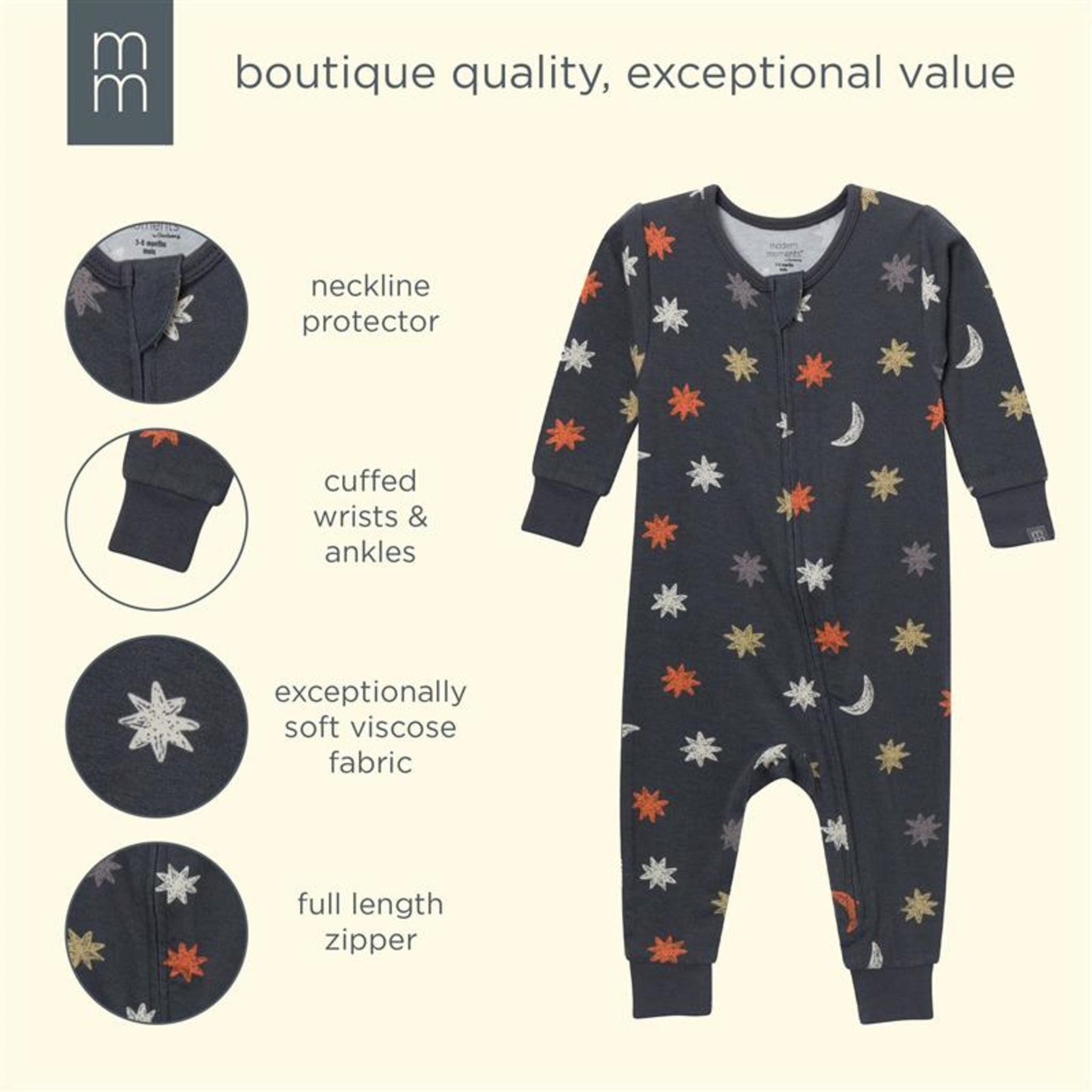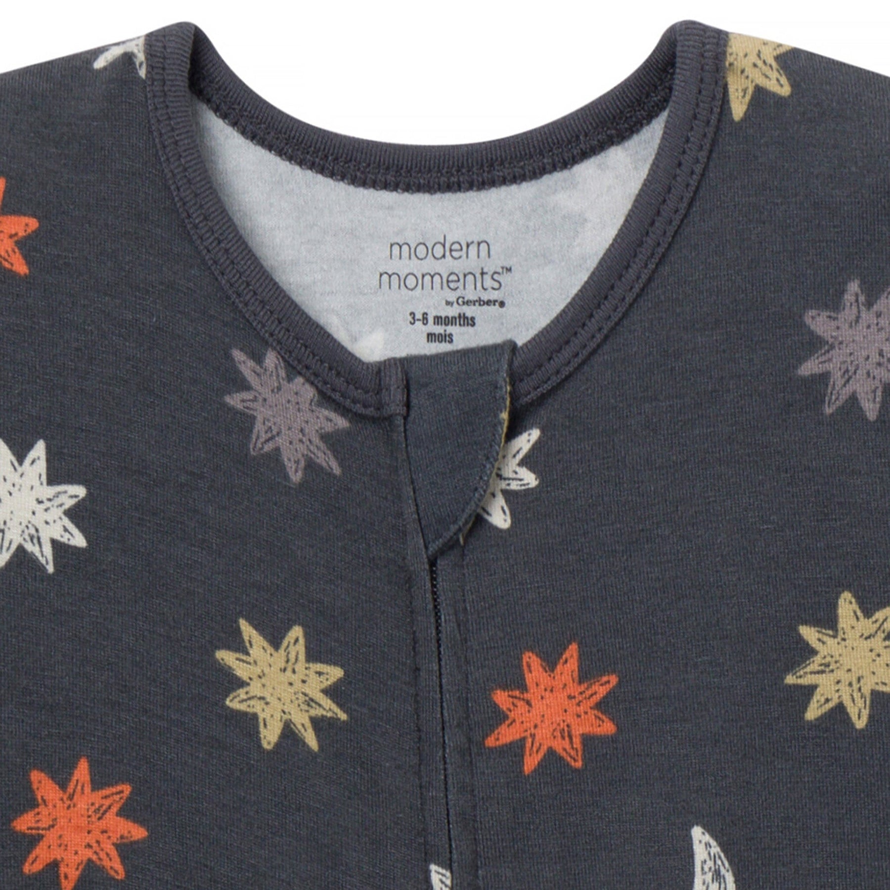 These snug-fitting footless pajamas are made for cool nights and crisp mornings, with a soft, stretchy viscose fabric that moves with your little one. A full-length zipper makes late-night changes simple, while a ribbed neckline and zipper guard keep them comfy all night long. Cinched cuffs and ankles provide a secure, cozy fit, and the autumn-inspired color and print bring a seasonal touch to bedtime. It’s sleepwear that feels as good as it looks. Available in sizes 0M-7. Our essentials have been independently certified with STANDARD 100 by OEKO-TEX® so that you don’t have to worry about harmful substances in your little one's wardrobe. Pack includes one pair of tight-fitting footless pajamas from modern moments™ by Gerber®.
