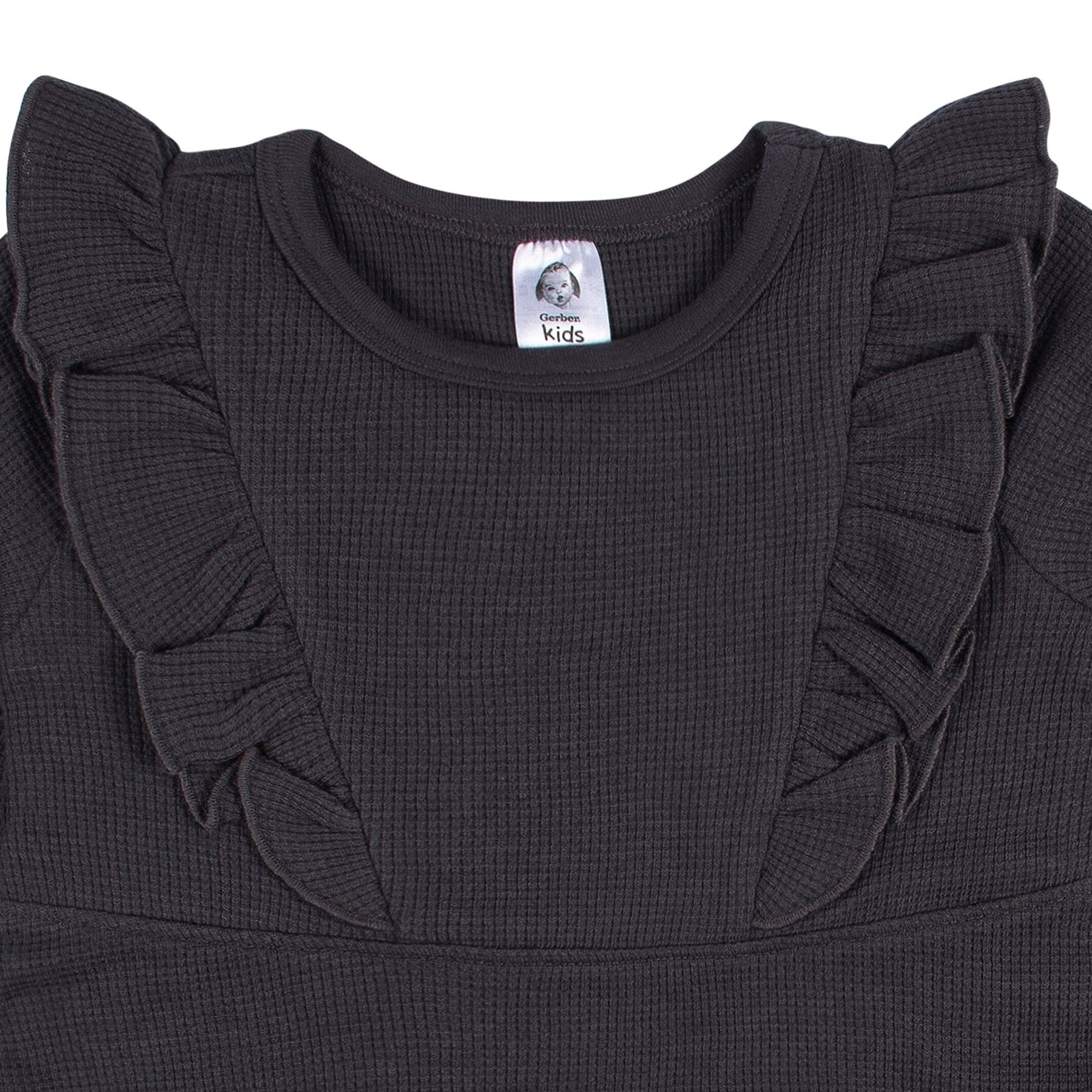 Featuring a stylish ruffle design on the shoulders that adds an elegant touch, this charcoal color dress is the perfect addition to your little one's wardrobe. Made from a soft and comfortable blend of cotton and polyester with long sleeves to keep your baby or toddler girl comfy, she'll want to wear it all the time! An simple pullover style makes getting dressed easy and care is easy with machine washing/drying. Our essentials have been independently certified with STANDARD 100 by OEKO-TEX® so that you don’t have to worry about harmful substances in your baby’s wardrobe. This pack includes one dress.