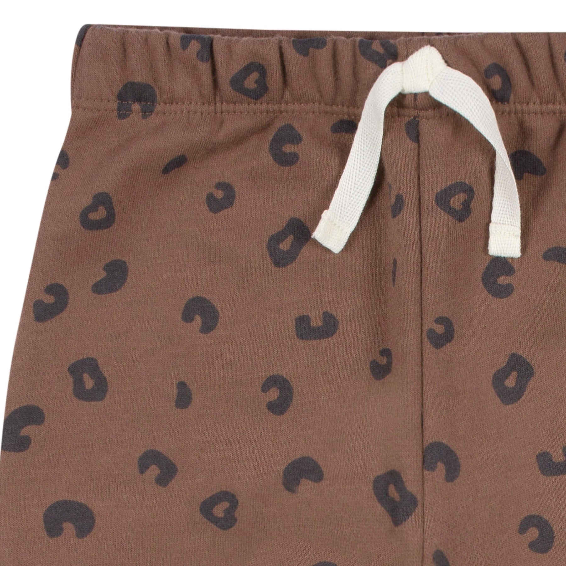 Made from a warm and comfy cotton and polyester blend, this matching set in brown with leopard print pattern is a super cozy outfit your baby girl or toddler girl will love to wear on chilly days. With a relaxed fit and comfort-stretch ribbing at the neck, wrists, waist and ankles, this set is the perfect fit no matter where the day takes you. From playtime to running errands or just a lazy day indoors, she'll love to wear it anywhere. A snug waistline keeps the pants in place, while a faux drawstring completes the look. Our essentials have been independently certified with STANDARD 100 by OEKO-TEX® so that you don’t have to worry about harmful substances in your baby’s wardrobe. This pack includes one top with matching pants.