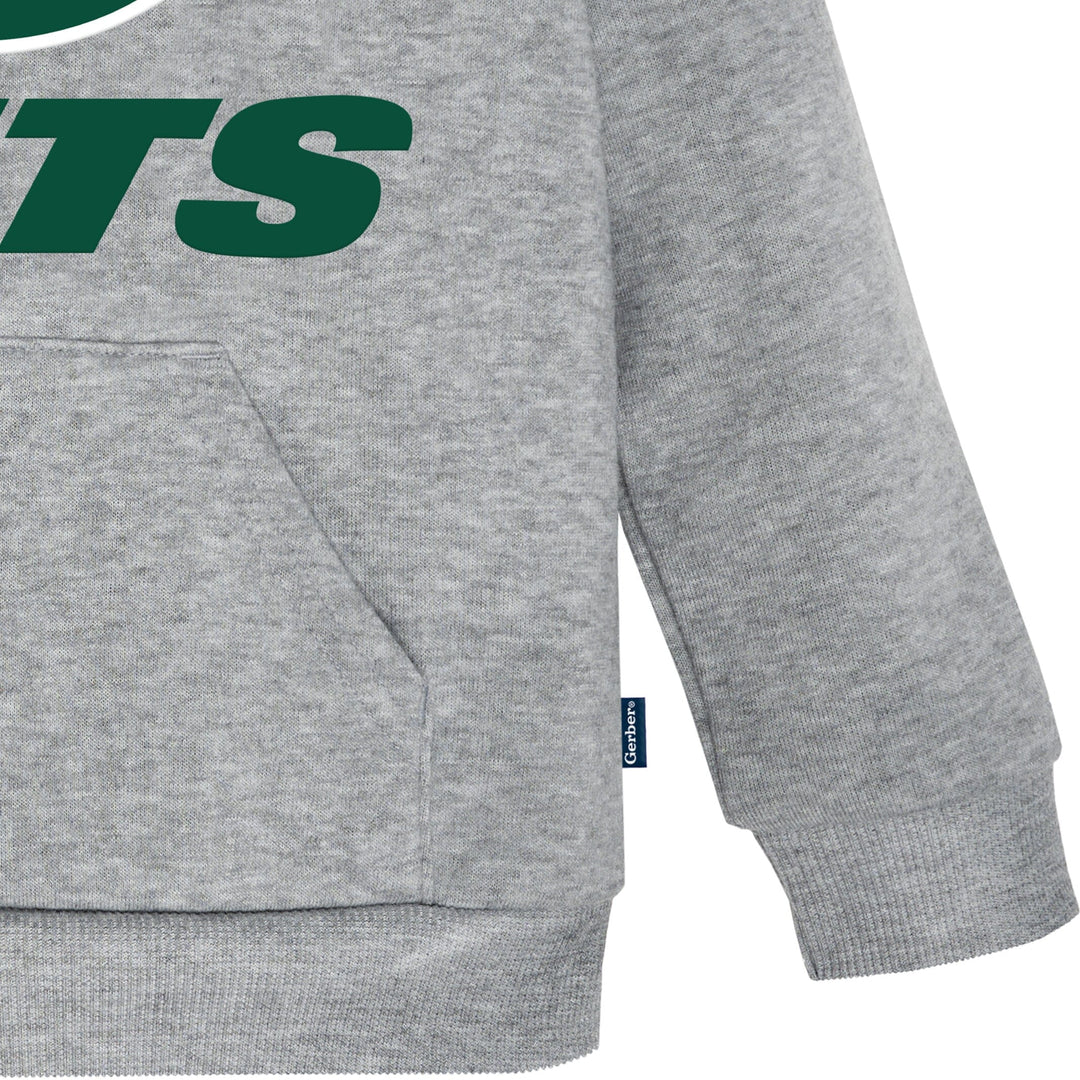 Even the smallest family members can get in the football spirit with our officially licensed New York Jets Hoodie. This hoodie is made to keep your little one comfortable throughout the entirety of the game or while playing with friends. Featuring an applique team name and logo front and center, cuffed sleeves and banded bottom, this is the perfect hoodie for infants and toddlers, as it may be worn comfortably all on its own or layered with a shirt for extra warmth. The hoodie also has a functional front pocket to keep those hands warm when it's a little chilly outside. This NFL by Gerber Jets team hoodie is machine washable to take care of any game-time spills with the utmost ease and convenience. Our essentials have been independently certified with STANDARD 100 by OEKO-TEX® so that you don’t have to worry about harmful substances in your little one's wardrobe.