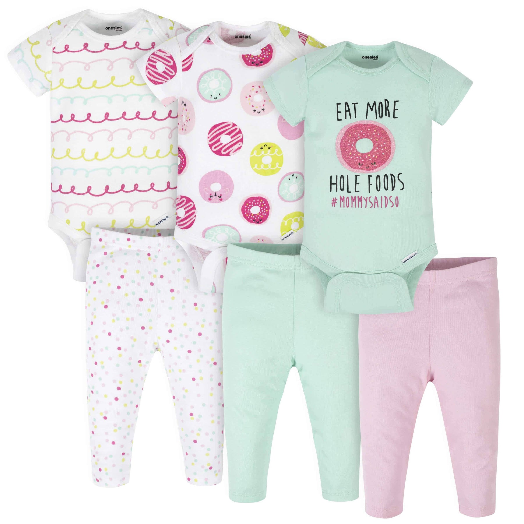 6-Piece Baby Girls Donut Onesies® Brand Bodysuits & Pants Set