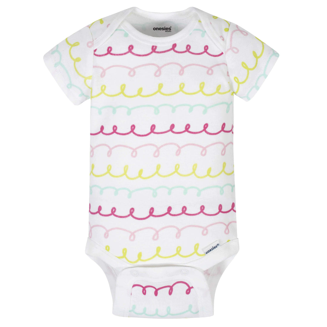 • Onesies® Brand bodysuits feature expandable lap shoulder necklines & high-positioned bottom snaps for easier changes. Pants feature gentle elastic waistbands to keep your little one's tummy comfy all day & for easy on/off. Perfect to mix & match for complete, creative outfits you & your baby will adore. Makes life just a little more simple!.