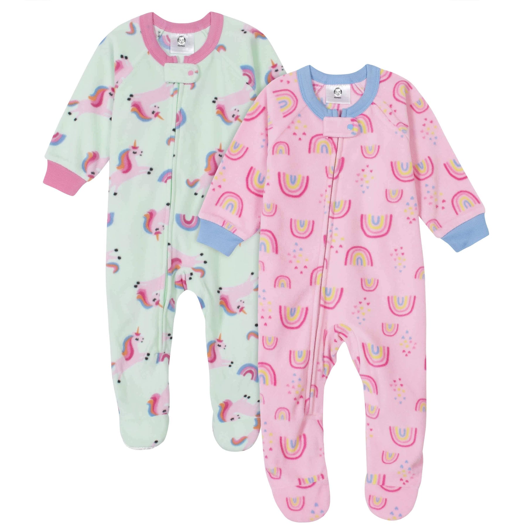Gerber® 2-Pack Baby Girls Unicorns & Rainbows Fleece Pajamas