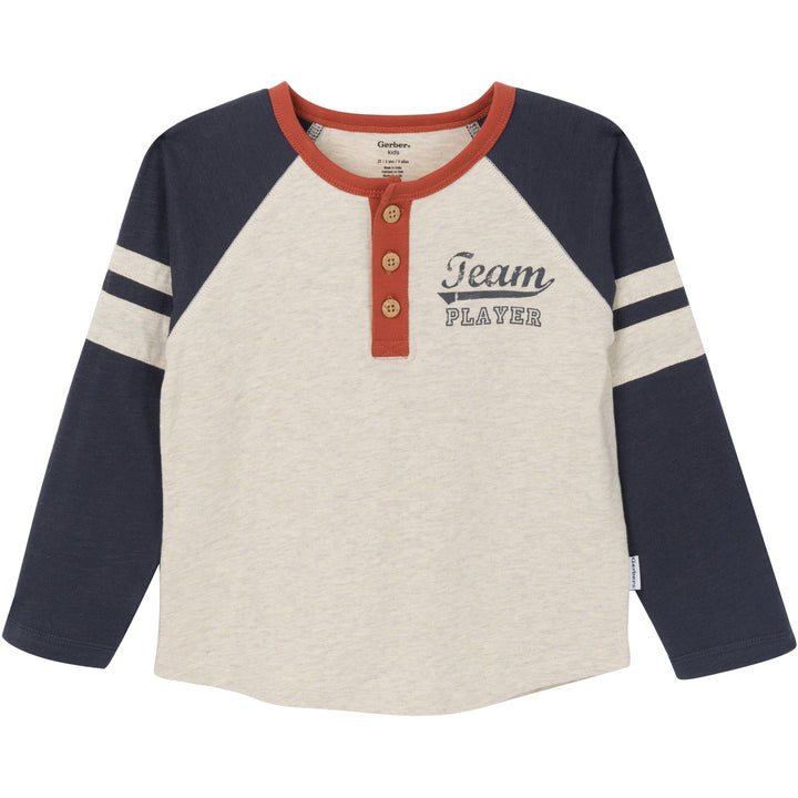 Made from soft and breathable cotton, this matching toddler boy outfit is perfect for cooler days. The Henley style long sleeve shirt keeps your little one warm and is easy to layer a jacket over if needed. The pants feature a stretchy waistband for a secure, comfortable fit all day. With cinched ankles, he’ll feel extra cozy even as the temperatures drop. Perfect for play dates or casual outings, this outfit is a versatile addition to your toddler's wardrobe. Our essentials have been independently certified with STANDARD 100 by OEKO-TEX® so that you don’t have to worry about harmful substances in your baby’s wardrobe. This pack includes one shirt with matching pants.