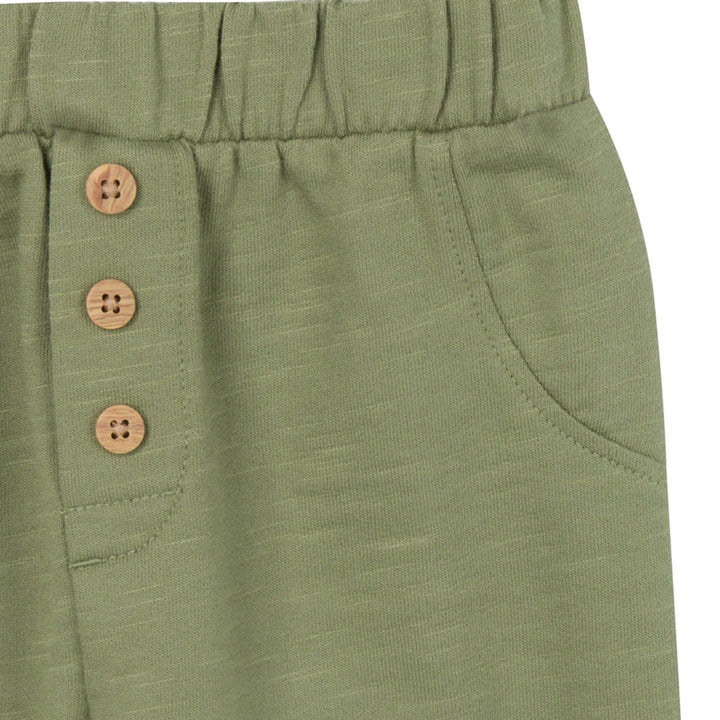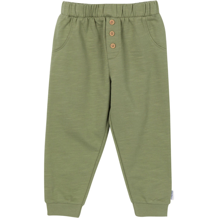 An ideal choice for cooler weather, this matching toddler boy outfit is crafted from soft and breathable cotton for comfort. The Henley style long sleeve shirt not only keeps your little one warm but also facilitates easy layering with a jacket if needed. Designed with a stretchy waistband, the pants ensure a secure and comfortable fit throughout the day. Additionally, cinched ankles guarantee extra coziness even as temperatures drop. Whether it's for play dates or casual outings, this versatile outfit promises both functionality and style, making it a valuable essential addition to your toddler's wardrobe. Our essentials have been independently certified with STANDARD 100 by OEKO-TEX® so that you don’t have to worry about harmful substances in your baby’s wardrobe. This pack includes one shirt with matching pants.