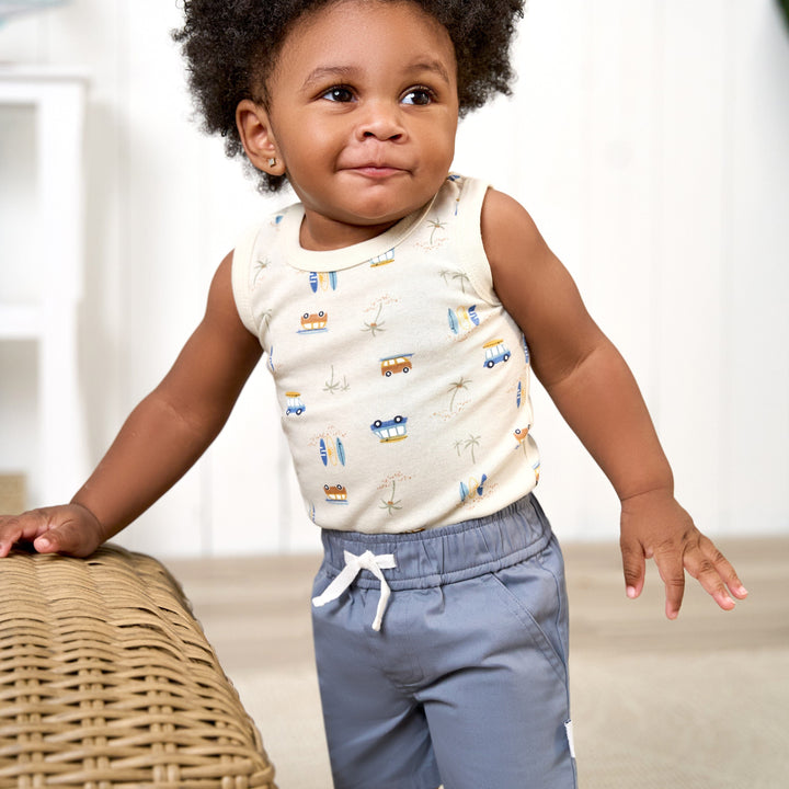 Beat the heat on warm, sunny days with these shorts for babies or toddlers! Made primarily from cotton with spandex for a slight stretch, these twill shorts feature a flexible waistband for easy movement through all his adventures. Mix and match the colors in this pack to build a variety of cute outfits for him to enjoy wherever the day takes you. And for easy care and cleaning when the day is done, simply toss them in the washer and dryer to keep them ready all season long. Our essentials have been independently certified with STANDARD 100 by OEKO-TEX® so that you don’t have to worry about harmful substances in your little one’s wardrobe. Includes two shorts.