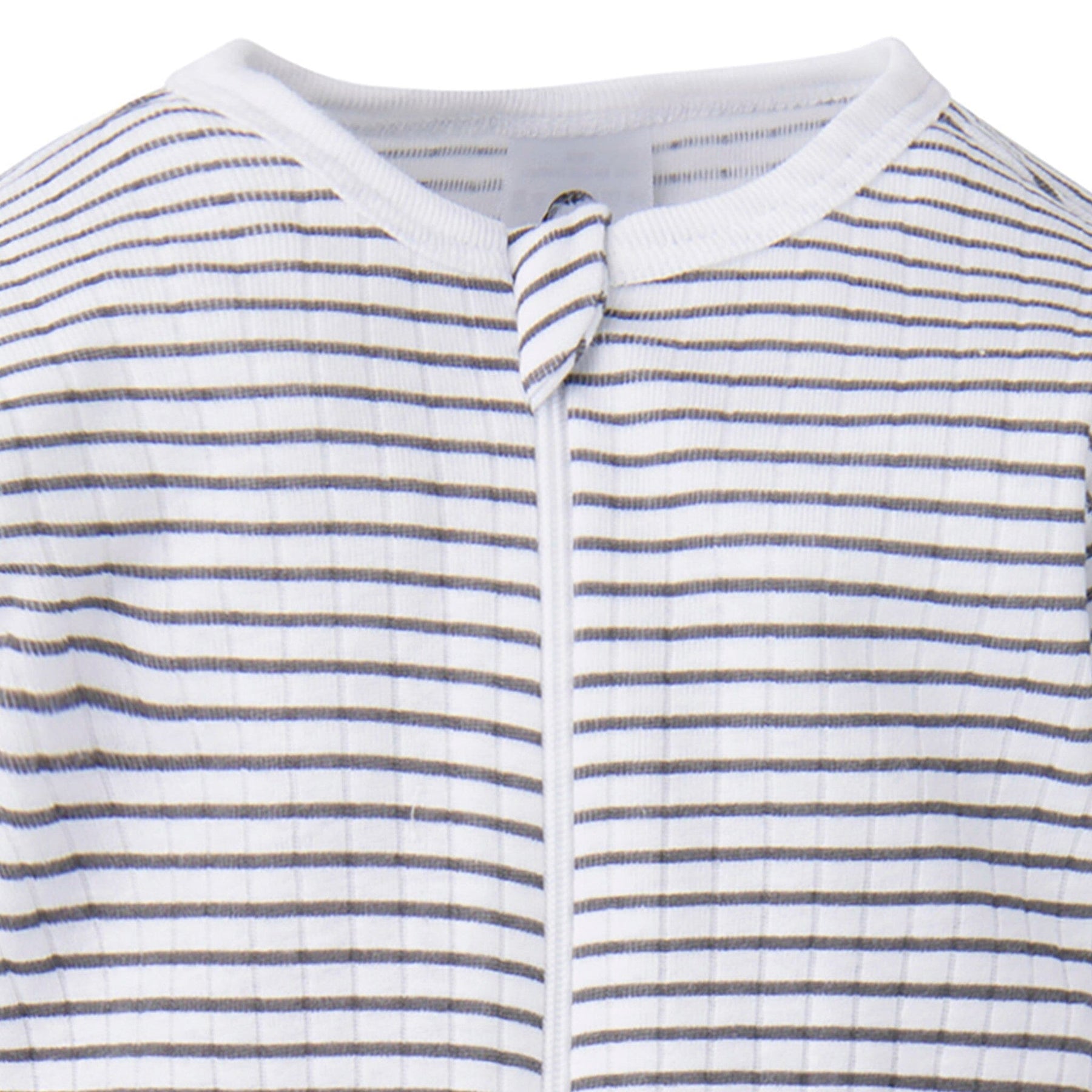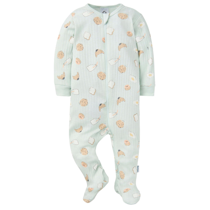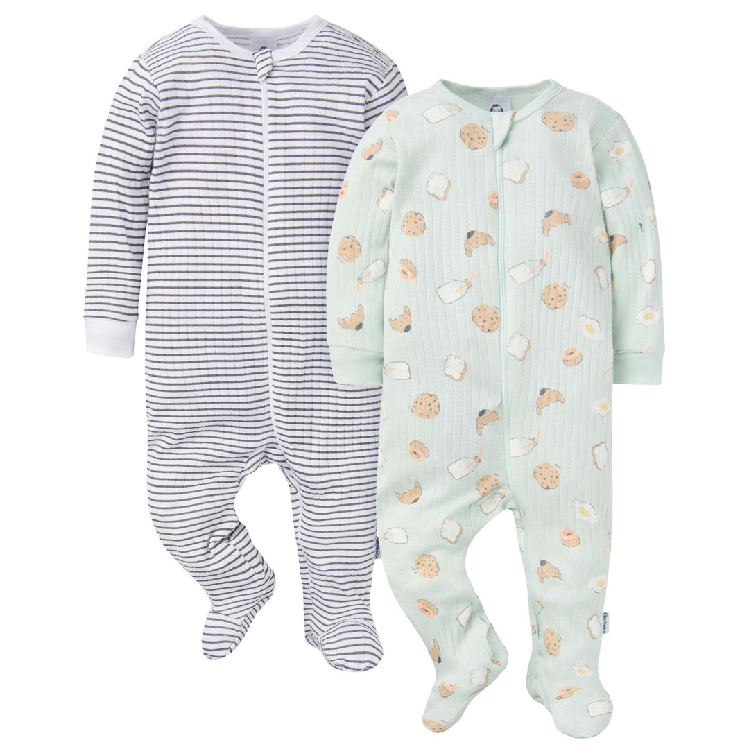 Start your baby’s day with a smile in this adorable 2-pack Sleep 'N Play set! Made from 100% cotton to be soft and gentle on sensitive skin, these one-piece outfits offer all-day comfort. The two-way zipper makes diaper changes and dressing simple, while the cozy footed design keeps your little one warm. This fun set includes one light green Sleep 'N Play with a playful breakfast theme featuring eggs and toast and one classic white with gray stripes—perfect for both playtime and naps! Our essentials have been independently certified with STANDARD 100 by OEKO-TEX® so that you don’t have to worry about harmful substances in your baby’s wardrobe. Pack includes two Sleep 'N Plays.