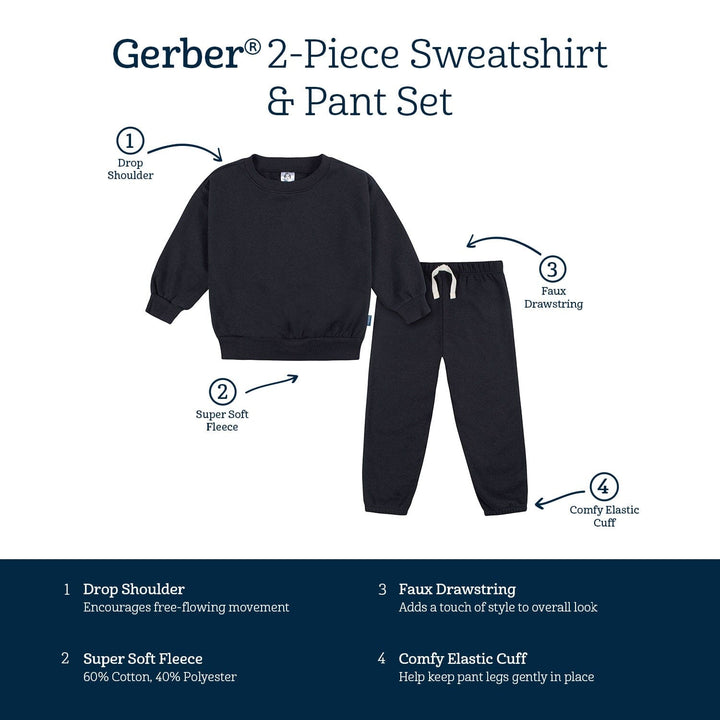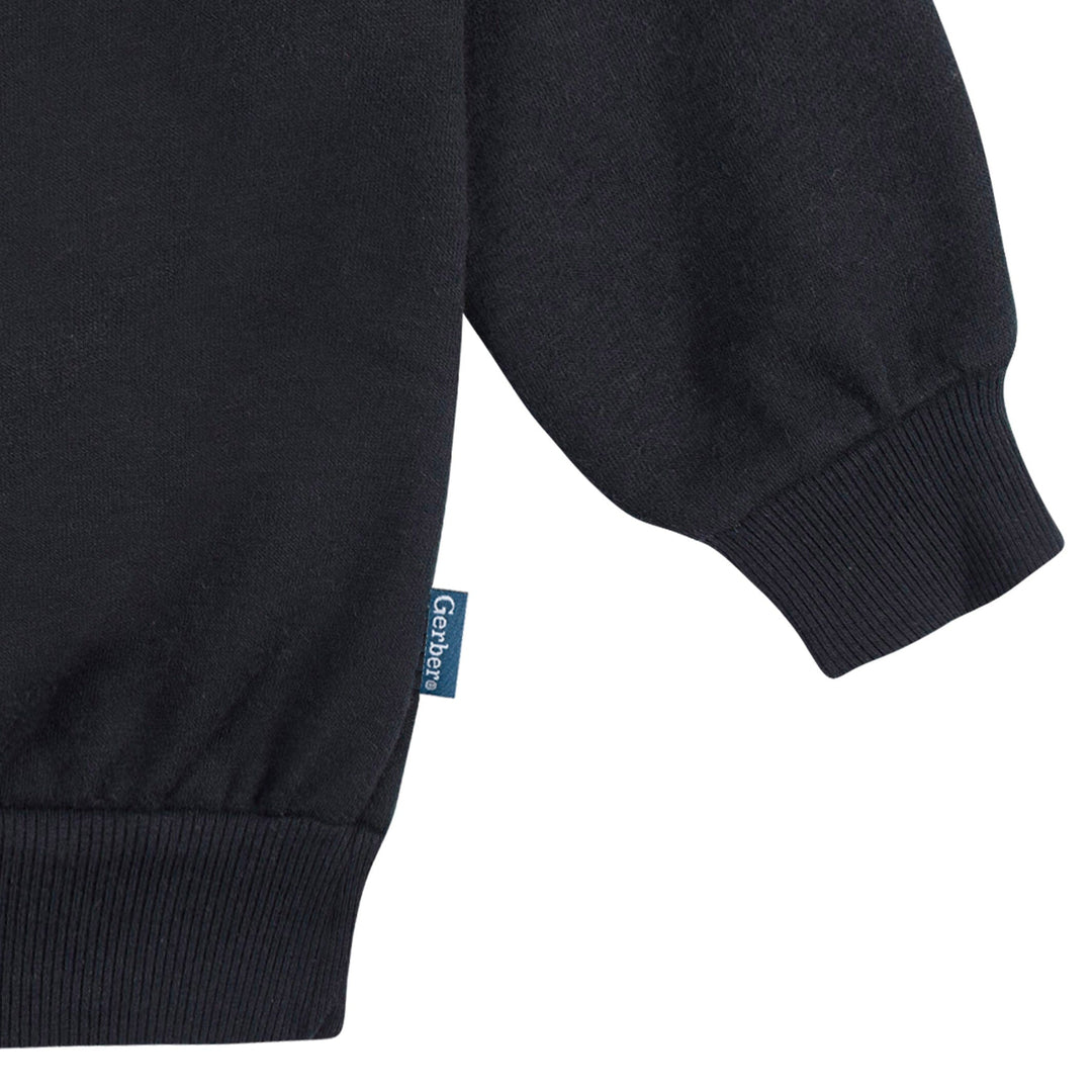This two-piece fleece set is the perfect cool weather outfit for your baby boy or toddler boy. Made from a cozy fabric blend designed to keep your little one comfy, it’s easy to add layers as needed. With a simple, solid black style, this top and bottom is the perfect choice for almost any occasion and saves you time and hassle finding matching pieces. An easy pullover top helps as your little one learns to dress himself, while the pullup pants fit simply and comfortable with a stretchy waistline. The faux drawstring adds a nice finishing touch. The entire outfit is easy to care for with machine wash/dry. A stylish and practical choice for your little one, this outfit is available in baby boy clothes sizes and toddler boy clothes sizes.