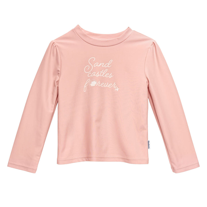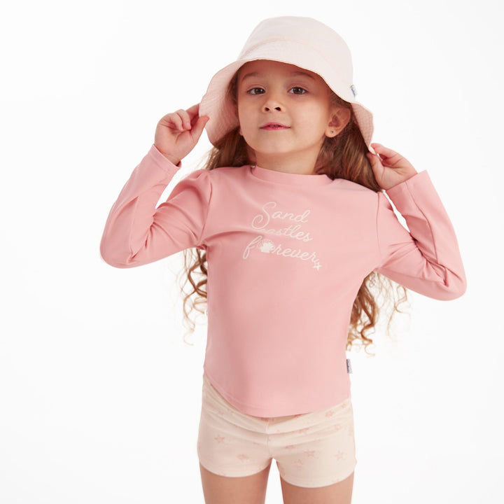 This coordinated, two-piece set of rash guard and bottoms, specially crafted for baby girls and toddler girls, offers an ideal way to enjoy a day at the beach, poolside, or even just playing around in the sprinklers. The quick-drying fabric with UPF 50+ protection guards against the sun's harmful rays, and the matching top and bottom ensure that you’re ready for a day of secure, safe, and stylish enjoyment! Our essentials have been independently certified with STANDARD 100 by OEKO-TEX® so that you don’t have to worry about harmful substances in your baby’s wardrobe. Includes a two-piece rash guard and swim shorts set.