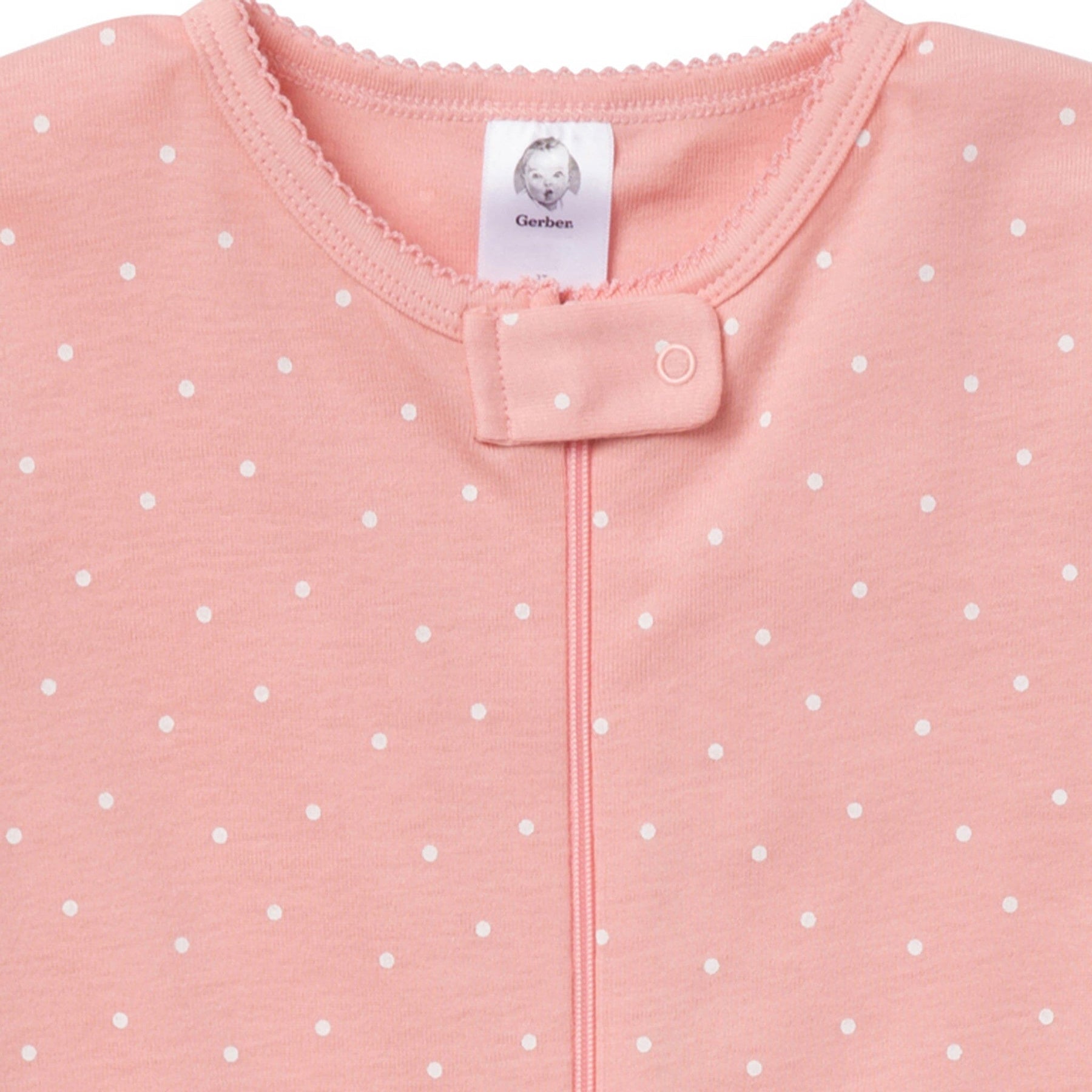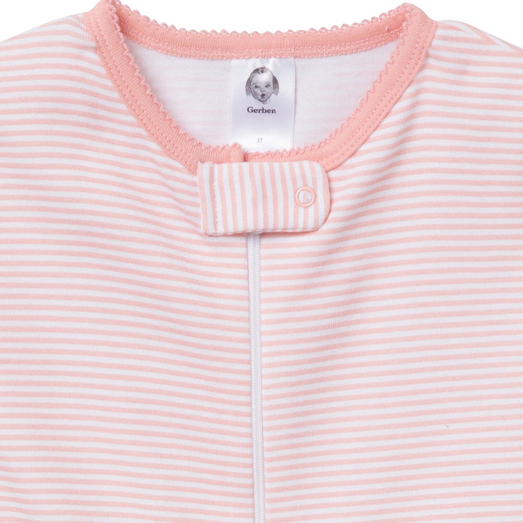 Get your little one ready for the colder months with this 4-pack of baby girl or toddler girl pajamas, perfect for a cozy night's sleep. Crafted primarily from soft cotton, these pajamas offer a breathable feel that keeps her snug without overheating. The two-way zipper with a neckline guard makes dressing and diaper changes fast and easy, while spandex trim at the neckline and wrists ensures a flexible, secure fit. Designed with a tight-fitting style for safe sleep, these footed pajamas also feature non-skid soles to provide extra traction and support for active little feet. With charming ballerina prints and pastel colors, this multipack is not only a practical choice for bedtime but also a delightful baby shower gift that combines comfort, safety, and adorable style. Our essentials have been independently certified with STANDARD 100 by OEKO-TEX® so that you don’t have to worry about harmful substances in your baby’s wardrobe. Pack includes 4 snug-fitting footed pajamas.