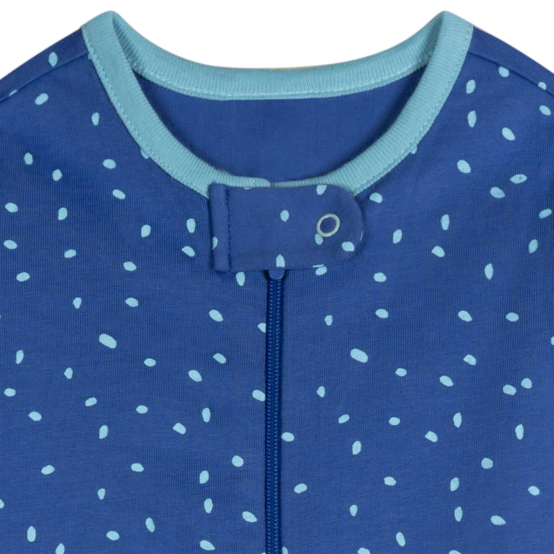 • Made from 100% cotton to be gentle on sensitive skin, full length zipper for easy dressing and diaper changes, ribbed neckline with zipper protector for comfort
