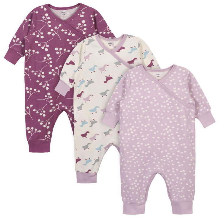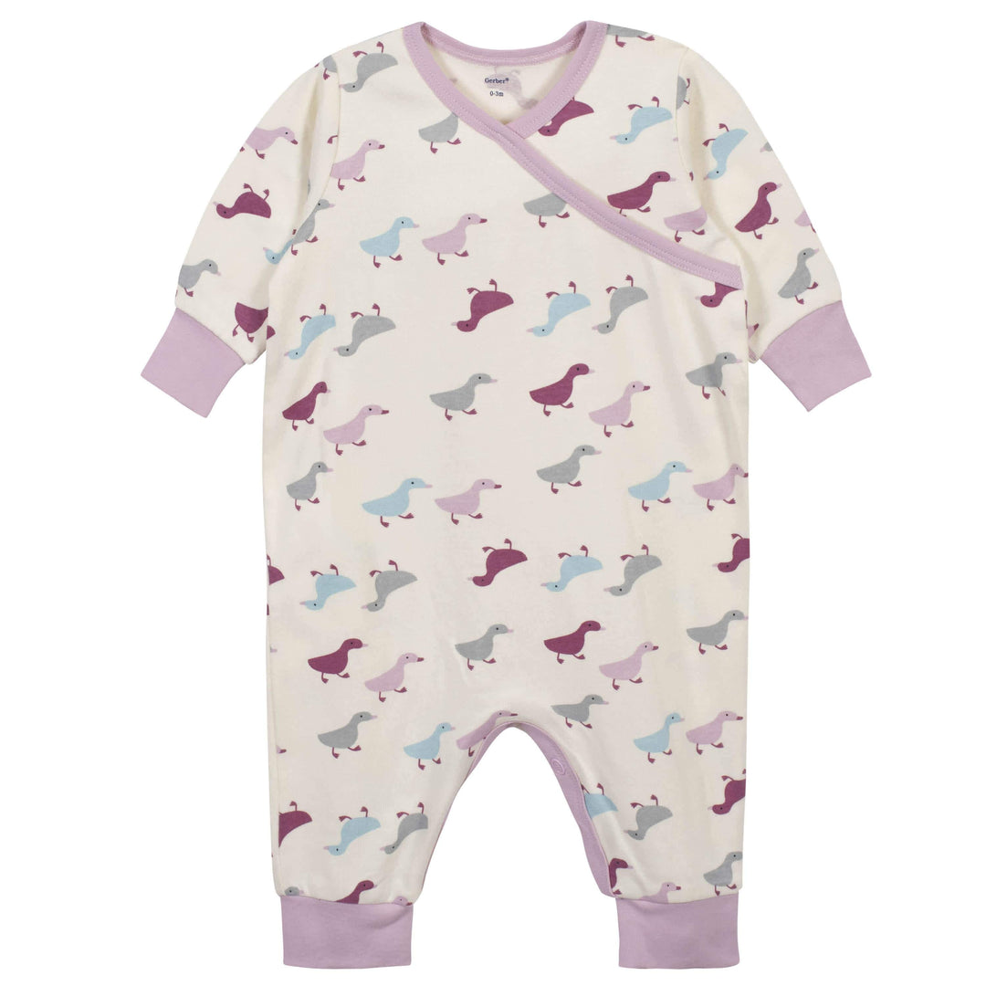 3-Piece Baby Girls Comfy Stretch Ducklings Coverall Set
