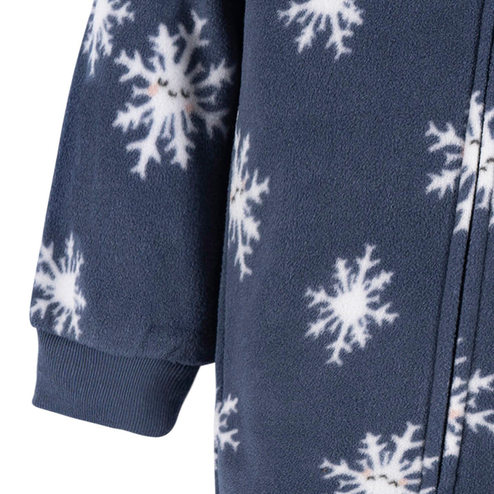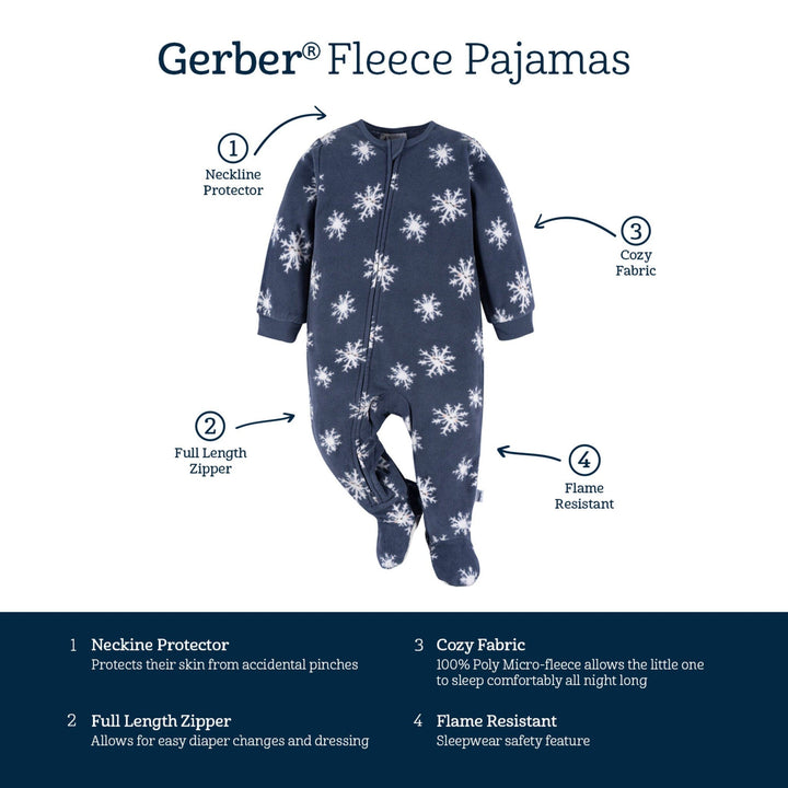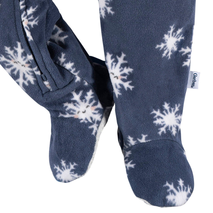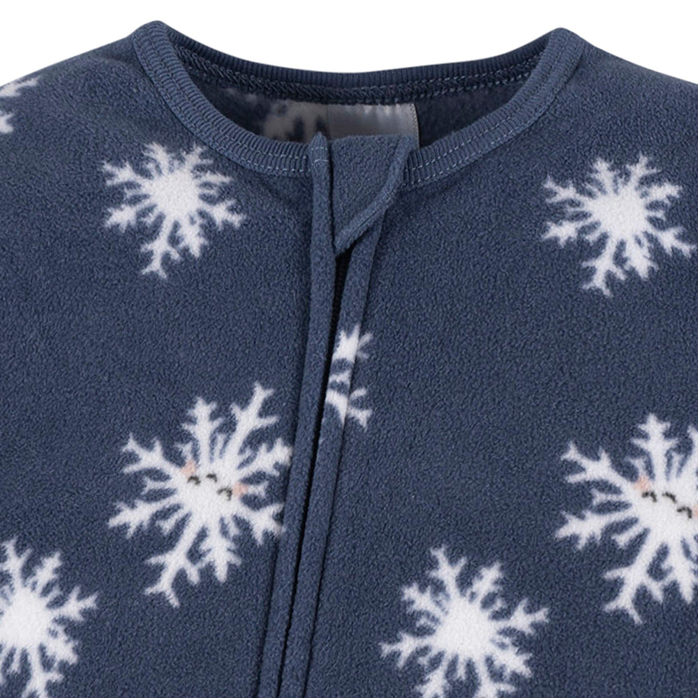 Help your baby or toddler boy drift off into a cozy winter dreamland with these soft, snuggly microfleece footed pajamas. Made from soft microfleece, it’s perfect for keeping your little one warm and comfy all night long. The charming white snowflake print on a soft blue background brings a gentle, seasonal touch to bedtime. Thoughtfully designed with a two-way zipper for quick and easy diaper changes, plus a rounded, ribbed neckline and zipper protector to keep baby’s skin comfy and irritation-free. Footed with non-skid soles, it adds a little extra grip and warmth for those wiggly toes on chilly mornings. Our essentials have been independently certified with STANDARD 100 by OEKO-TEX® so that you don’t have to worry about harmful substances in your baby’s wardrobe. One pack of footed pajamas.