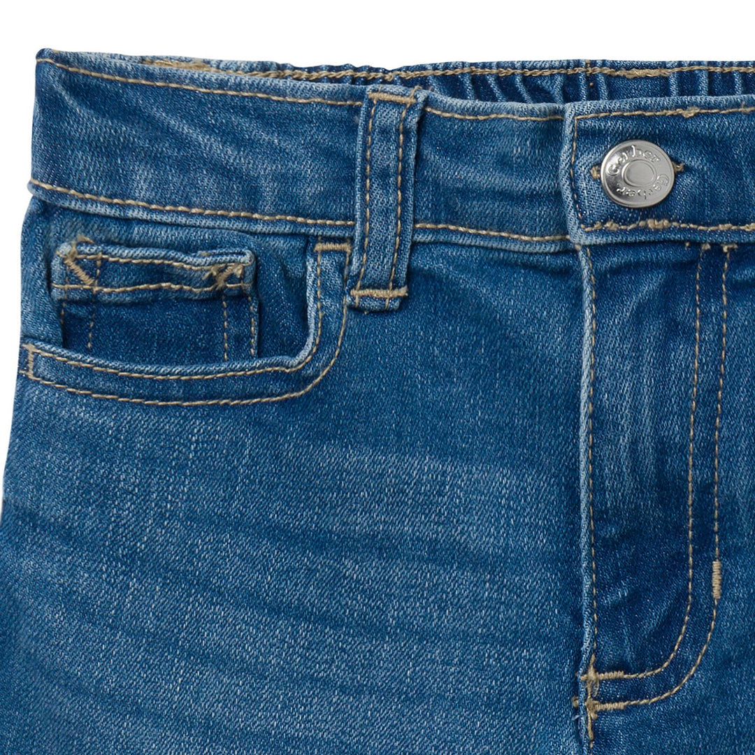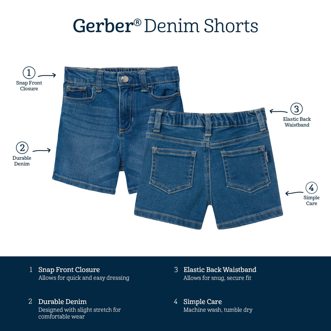 Get your little one ready for warm-weather fun with these light blue gender-neutral baby shorts! Crafted from soft fabric with a touch of stretch, they’re made for all-day comfort and easy movement. The elastic back waistband ensures a snug, fuss-free fit, while the front snap makes outfit changes quick and simple. Functional pockets provide space for little treasures, and the light blue wash gives these shorts a classic, breezy style that pairs perfectly with any top. Our essentials have been independently certified with STANDARD 100 by OEKO-TEX® so that you don’t have to worry about harmful substances in your baby’s wardrobe. Includes one pack of gender-neutral denim baby shorts.
