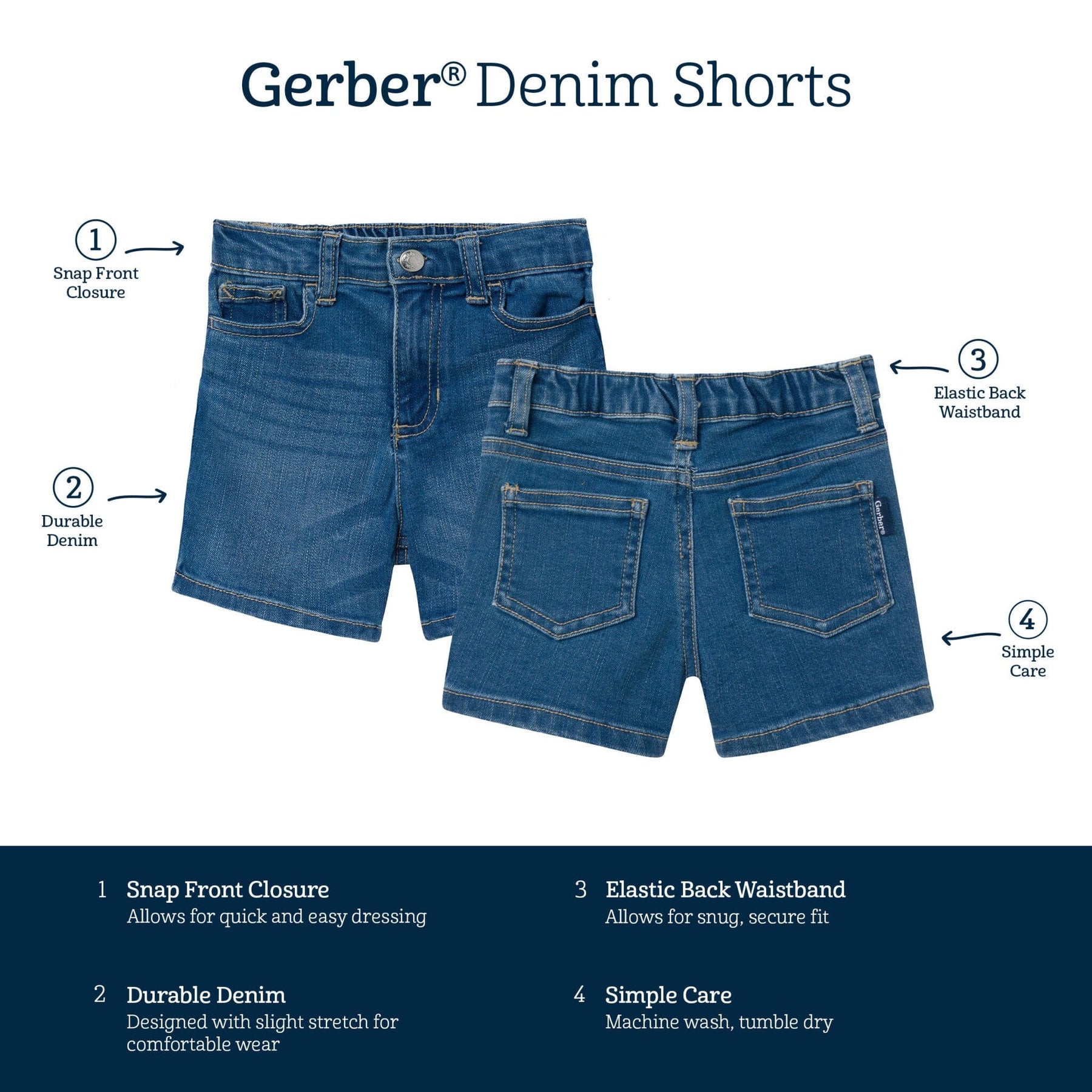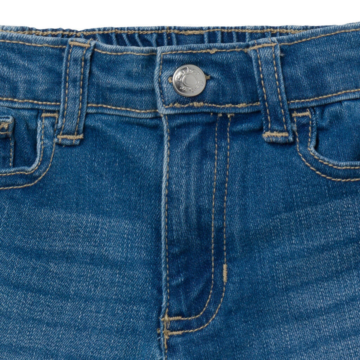 • Light blue wash, easy to match with tops for sunny day play