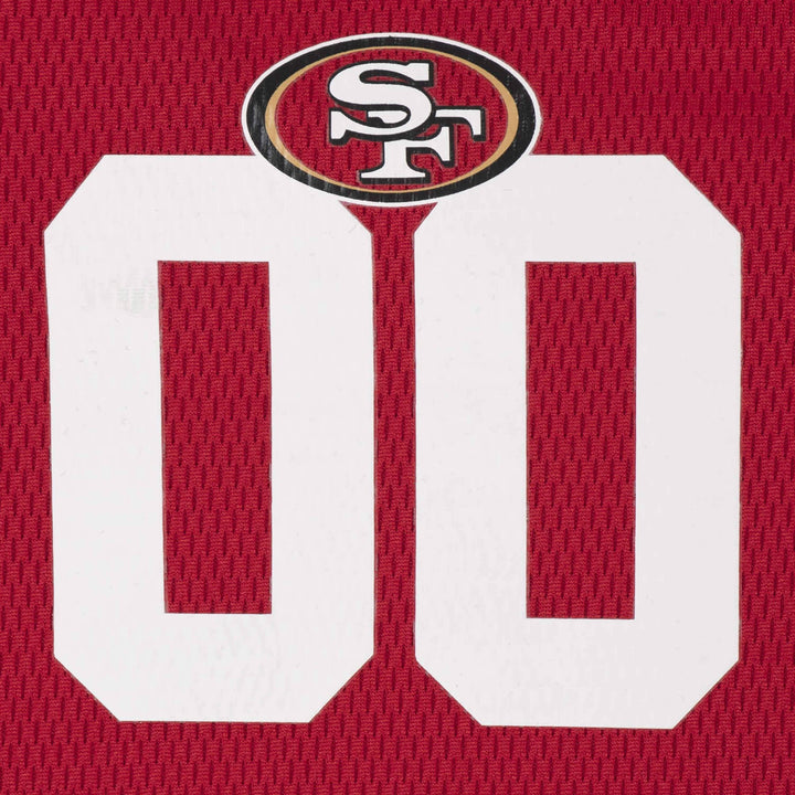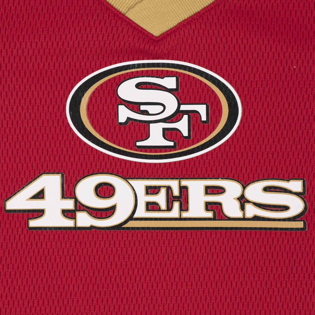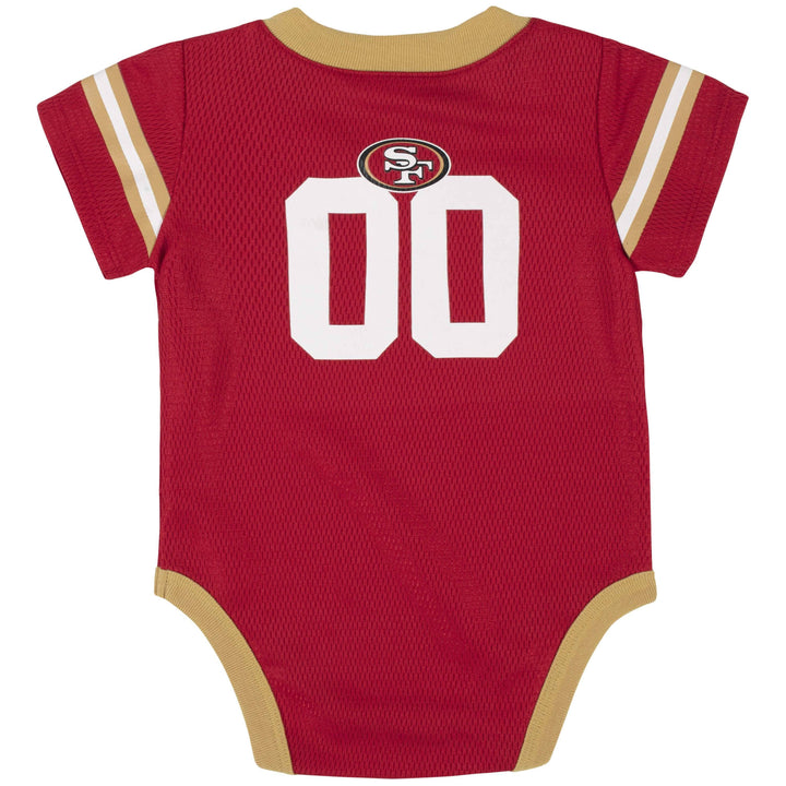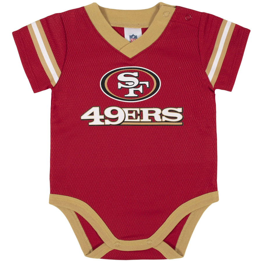 This officially licensed NFL bodysuit is the perfect first 49ers “jersey” for your little one! Your will stay comfy throughout the entire game (and day!) in the polyester mesh fabric of this NFL bodysuit. The bodysuit features a V-neck with a shoulder placket to keep changes comfortable and quick. The bodysuit also features jersey numbers on the back and a team logo front and center to show off ’s team pride. The bottom snaps are positioned for convenient diaper changes, so taking breaks from the game won’t last long. This boys’ bodysuit is a great choice for warm or cool game days, as it may be layered over or worn all on its own. This bodysuit is machine washable for your convenience.