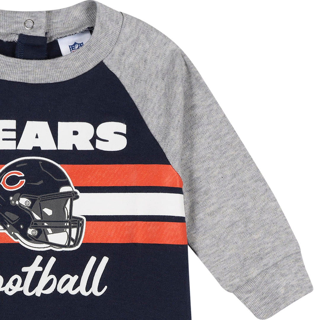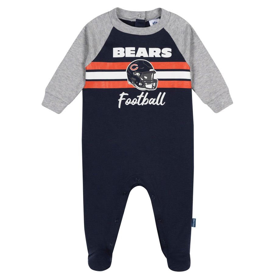 Snuggle up, little Bear—it’s time for a cozy day filled with big dreams! This sleep 'n play is crafted from soft, durable interlock fabric for warmth and comfort, perfect for chilly days. Thoughtful details like flexible ribbing at the wrists and neckline keep your baby comfy, while leg snaps and two rear neckline snaps make changes quick and easy. With a bold screen print of the Bears helmet and logo in signature navy and orange, this sleep 'n play is just what your little one needs to pass the day dreaming of game-day victories! Our essentials have been independently certified with STANDARD 100 by OEKO-TEX so that you don’t have to worry about harmful substances in your little one's wardrobe. Includes one sleep 'n play.