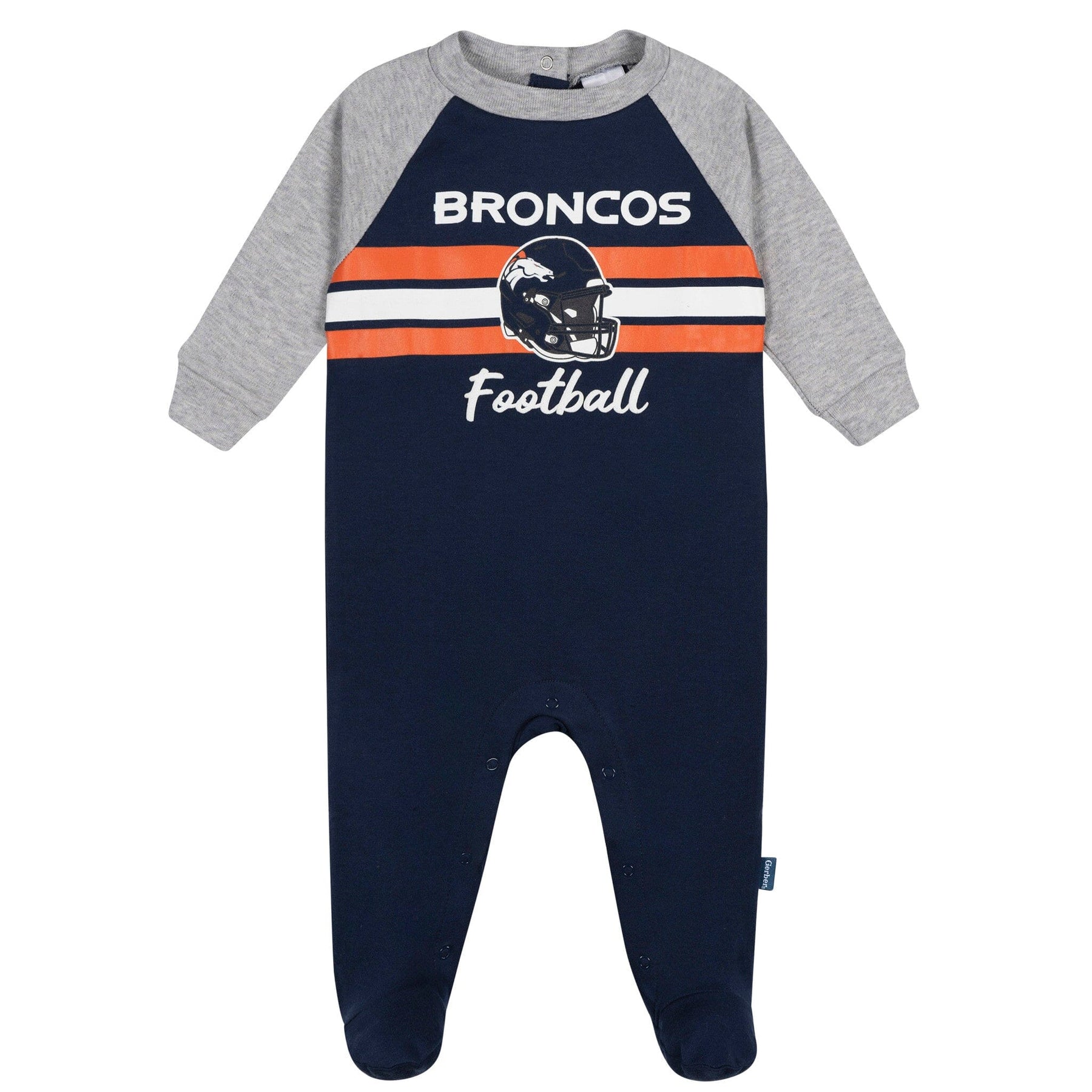 Time for a cozy huddle before playtime! This sleep 'n play is made from thick, soft interlock fabric to keep your little Bronco warm and snuggly through the entire day. Flexible ribbing at the wrists and neckline ensures a comfy fit, while leg snaps and two rear neckline snaps make changing quick and easy. With a bold screen print of the Broncos helmet and logo in iconic orange and navy, this sleep 'n play is a must-have for future football stars in the making! Our essentials independently certified with STANDARD 100 by OEKO-TEX so that you don’t have to worry about harmful substances in your little one's wardrobe. Includes one sleep 'n play.