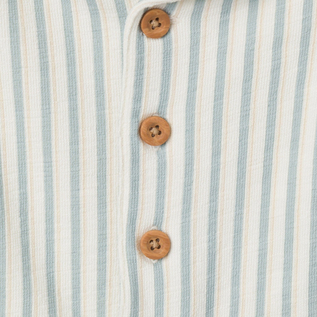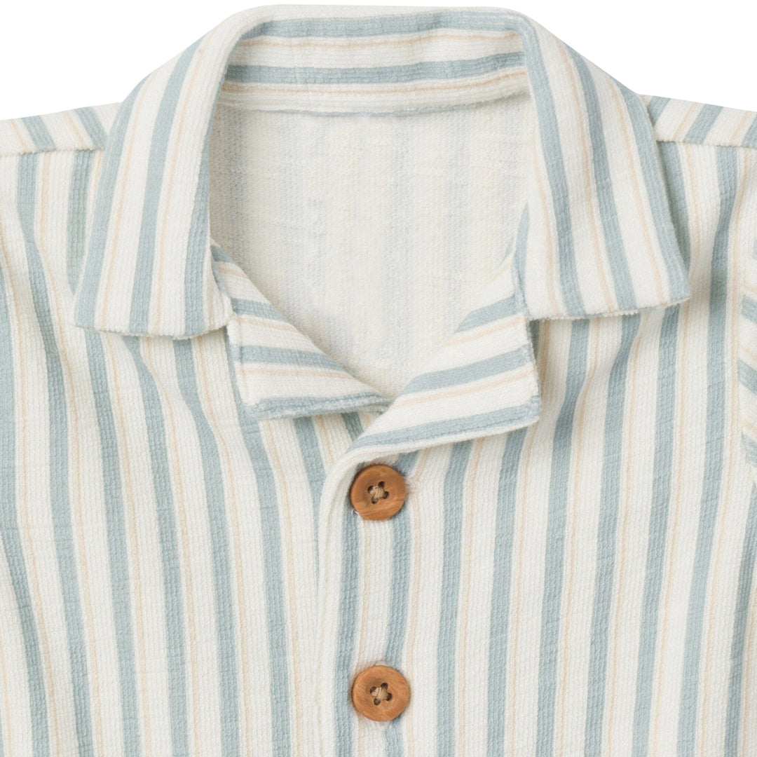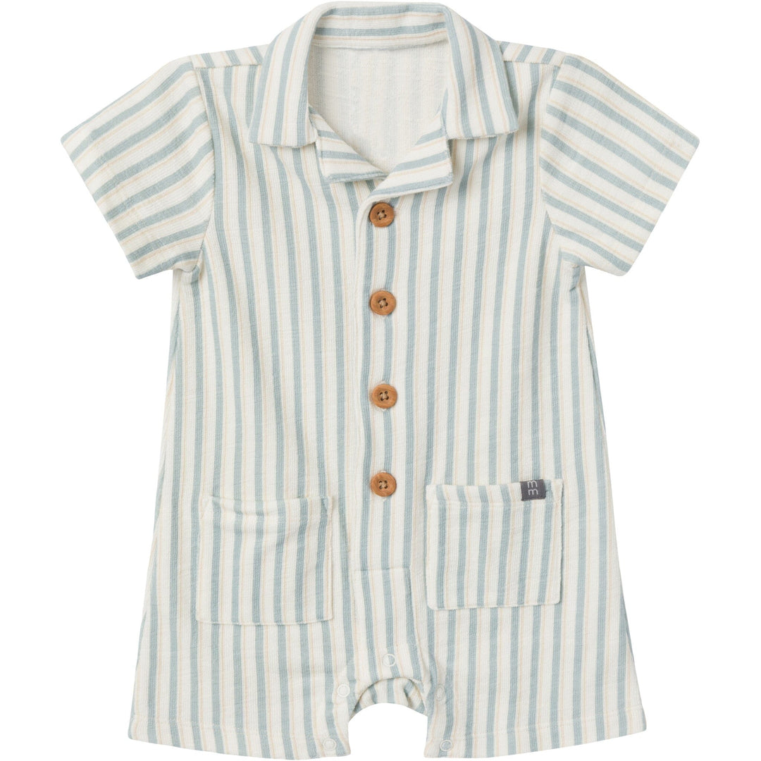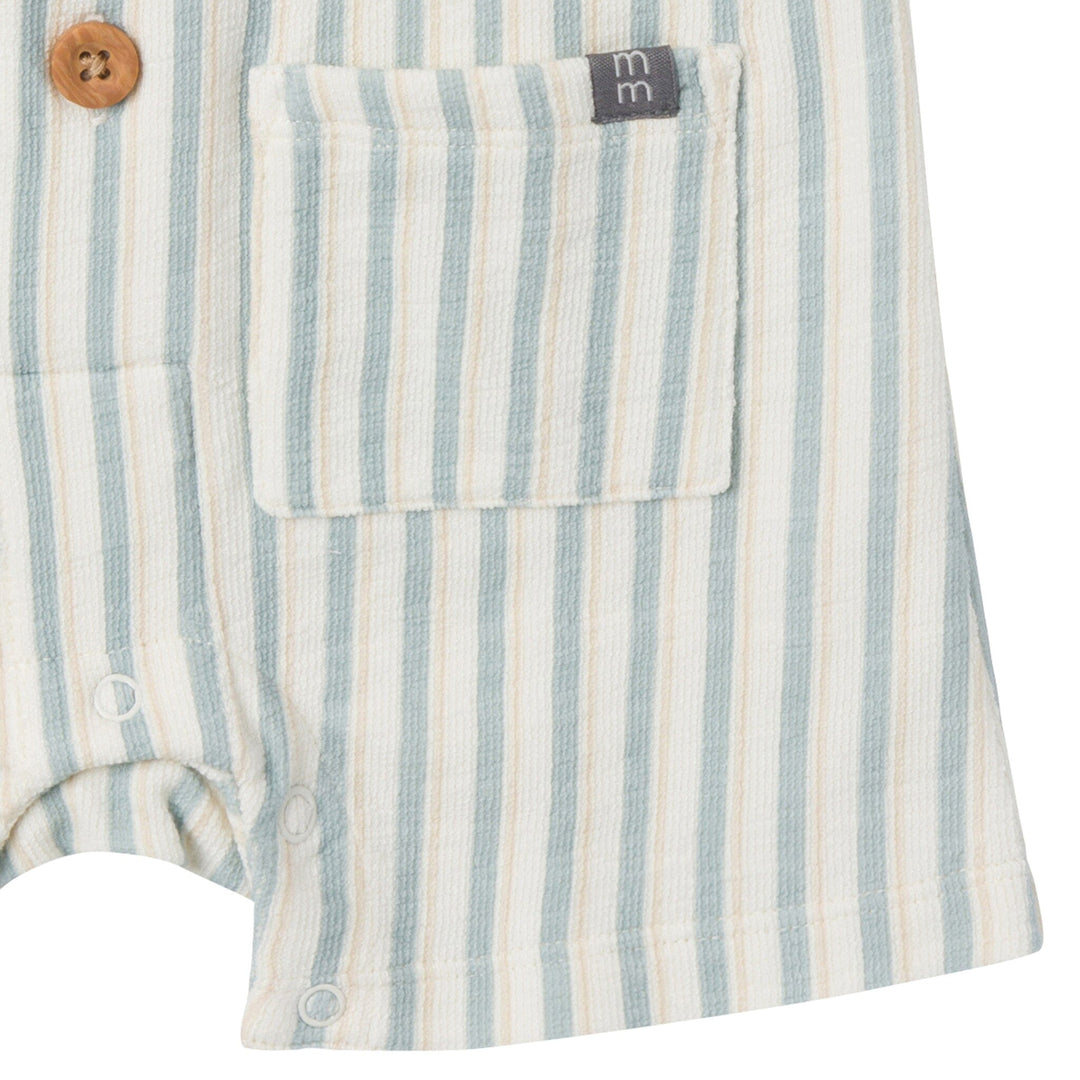 Baby Boys Teal Stripe Collared Short Sleeve Romper