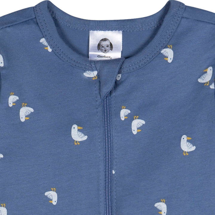Set sail for sweet dreams and endless play with this adorable baby boy Sleep 'N Play! Made from 100% cotton, it's gentle on your baby's sensitive skin and provides a soft, cozy fit. The solid blue design with a playful seagull print adds a splash of fun, while the footed style keeps tiny toes warm during naptime or adventures around the house. A full-length zipper makes dressing and diaper changes easy and is finished with a protective zipper guard for comfortable wear. Whether it's time for snuggles or exploring, this Sleep 'N Play is ready for every moment. Our essentials have been independently certified with STANDARD 100 by OEKO-TEX® so that you don't have to worry about harmful substances in your baby's wardrobe. This pack includes one Sleep 'N Play.