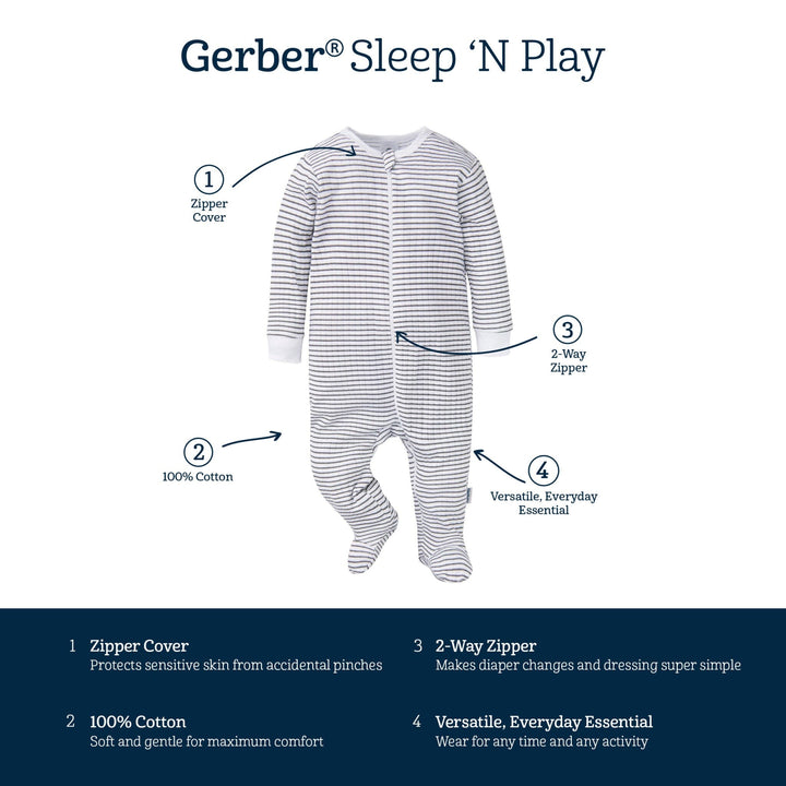 For your little handyman, this Sleep 'N Play is the perfect fit! Covered in a colorful mix of hammers, saws, screwdrivers, and wrenches, it brings a playful, tool-time vibe to snuggles and sleep. Made from 100% soft cotton, it’s gentle on sensitive skin, and the footed style keeps those tiny toes warm and cozy. The full-length zipper makes diaper changes quick and easy, while the rounded collar with a protective zipper tab helps prevent irritation. Practical, fun, and oh-so-comfy — your little builder will love it! Our essentials have been independently certified with STANDARD 100 by OEKO-TEX® so that you don’t have to worry about harmful substances in your little one's wardrobe. Includes one Sleep 'N Play.